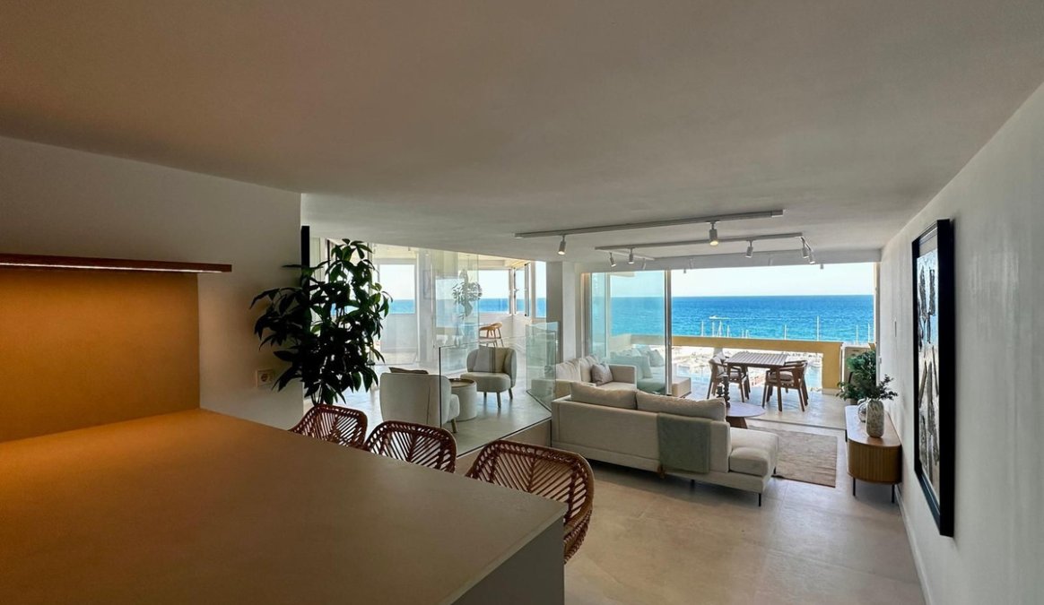 Su amplio y luminoso salón se funde en un espacio abierto con la cocina de diseño, totalmente equipada con electrodomésticos de última generación. Desde aquí se accede a una espectacular terraza donde las impresionantes vistas al mar se convierten en las verdaderas protagonistas: un lugar perfecto para disfrutar de inolvidables amaneceres y atardeceres.