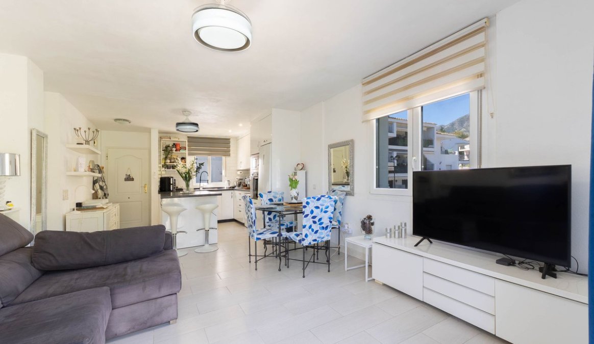 Este luminoso piso de 2 dormitorios en última planta destaca por su privacidad, su excelente orientación y su agradable terraza, ideal para disfrutar del clima de la Costa del Sol durante todo el año.