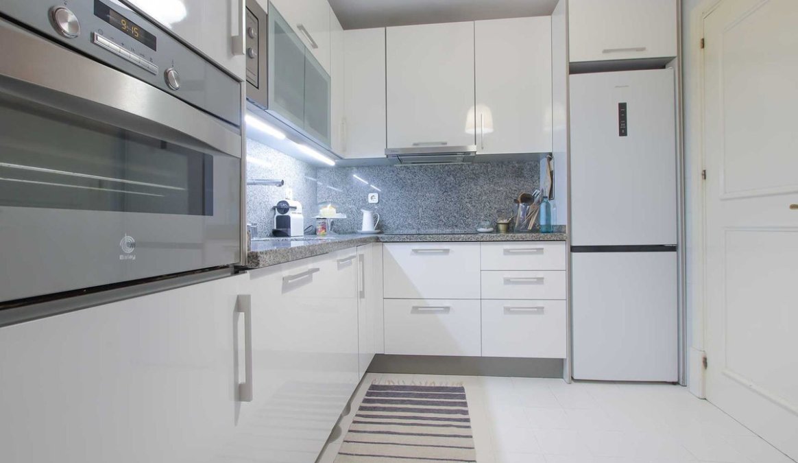 Cocina moderna con electrodomésticos de alta calidad y encimeras de granito.