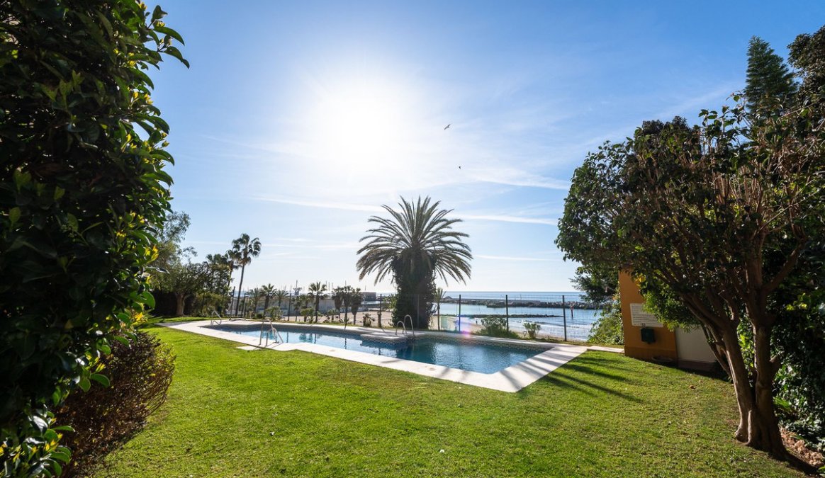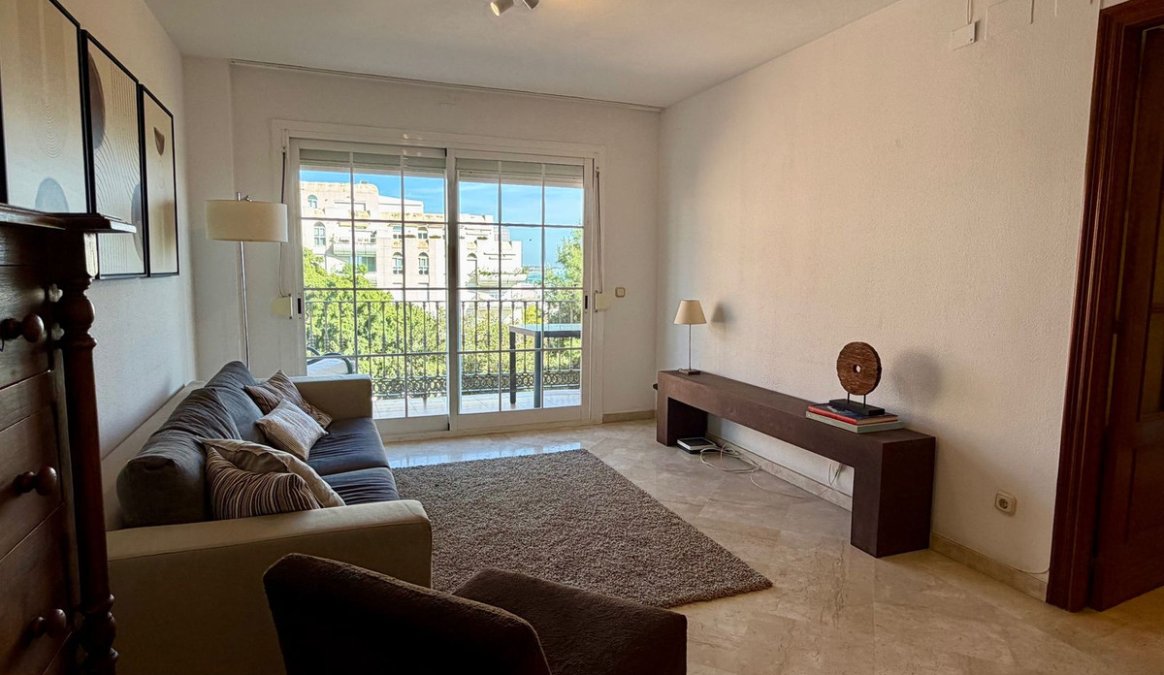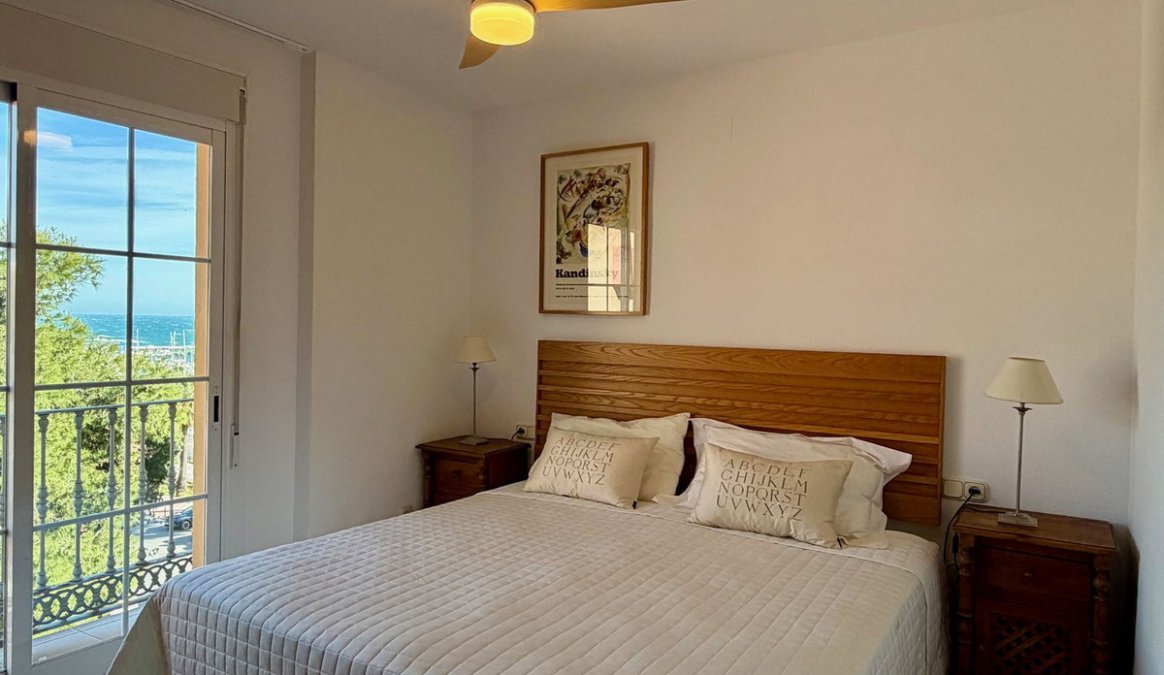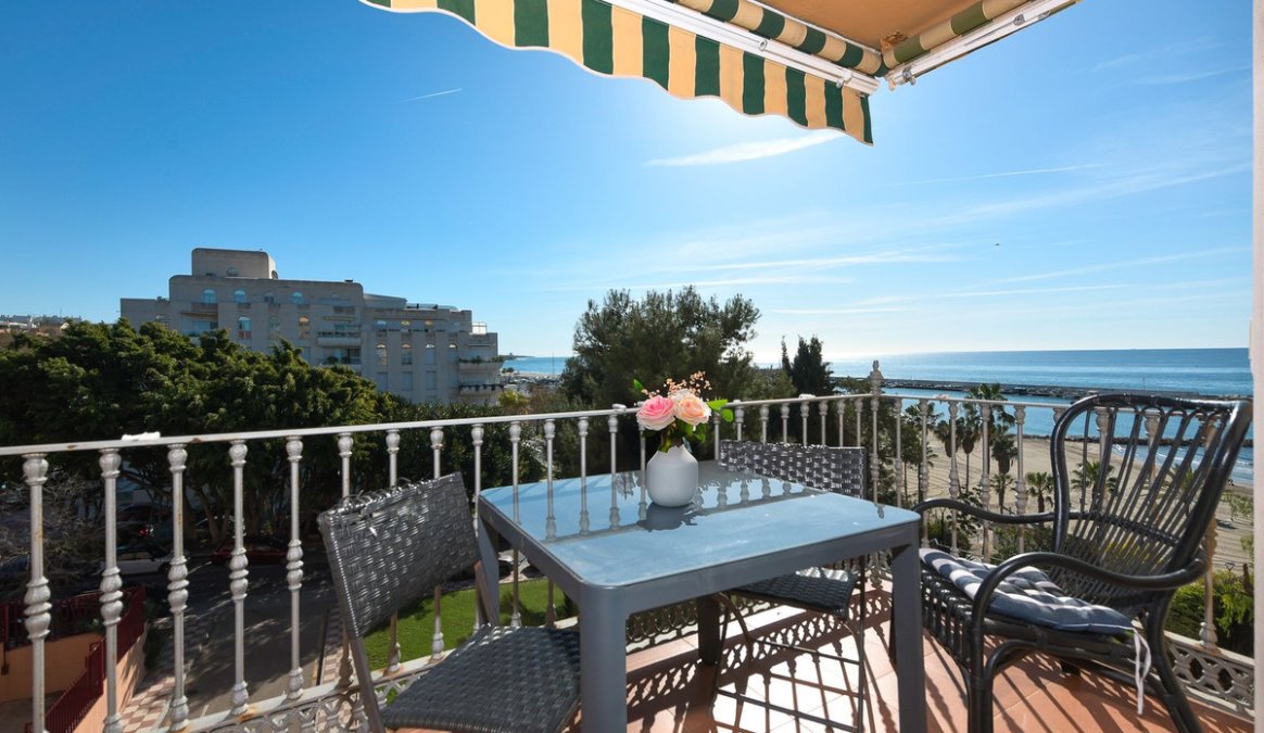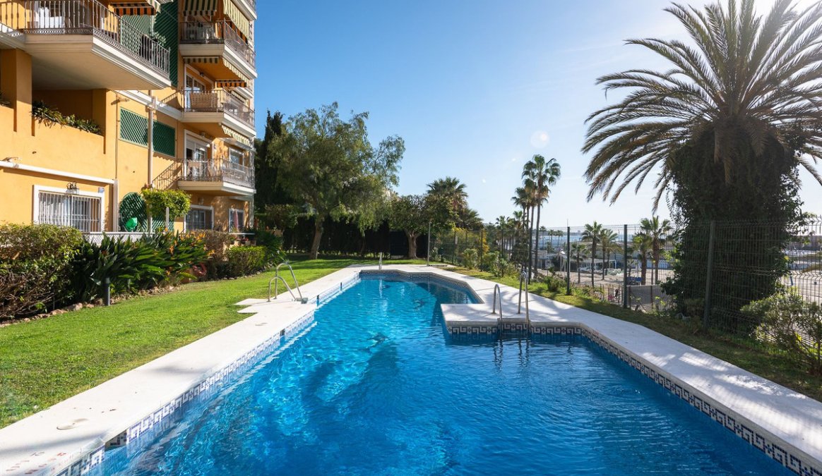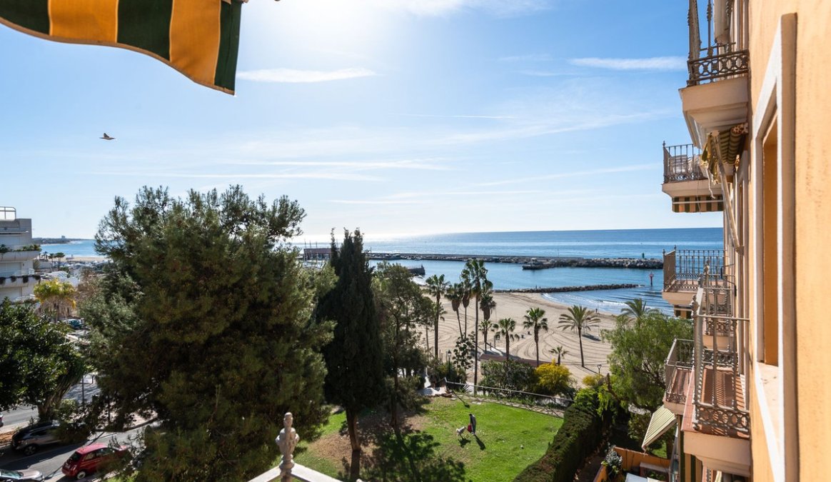 Estupendo apartamento en ALQUILER de 3 dormitorios y 2 baños completos (bañera y ducha), con una terraza ideal con vistas al puerto de Marbella, incluye plaza de garaje subterránea, en primera linea de playa en La Bajadilla.