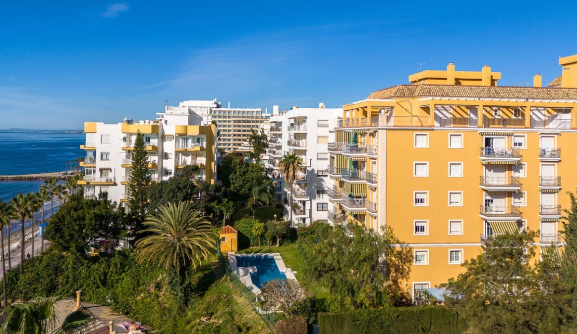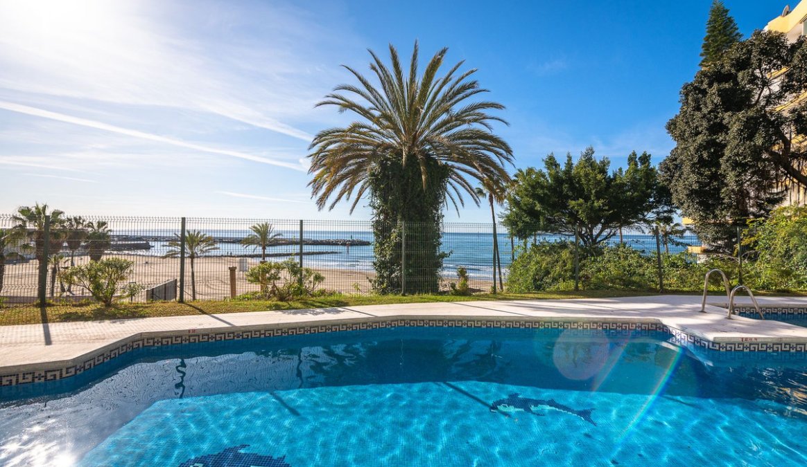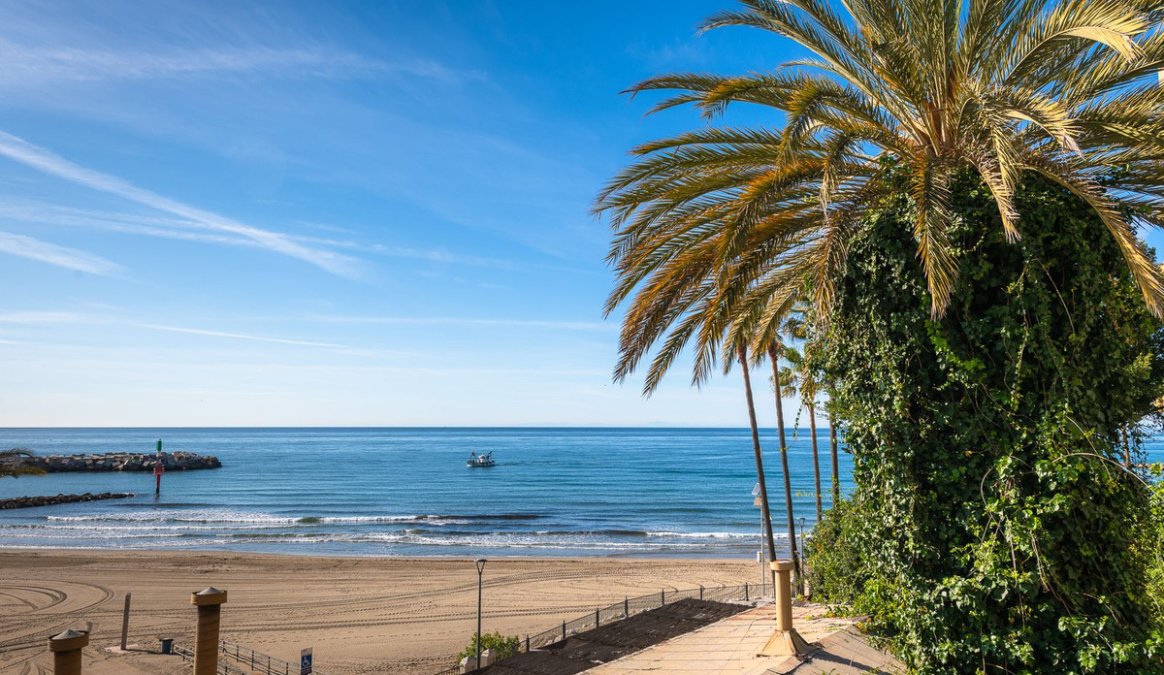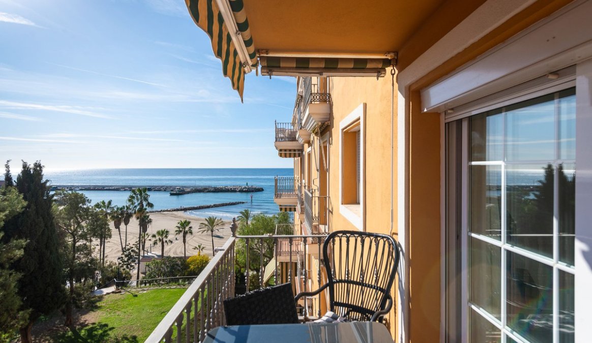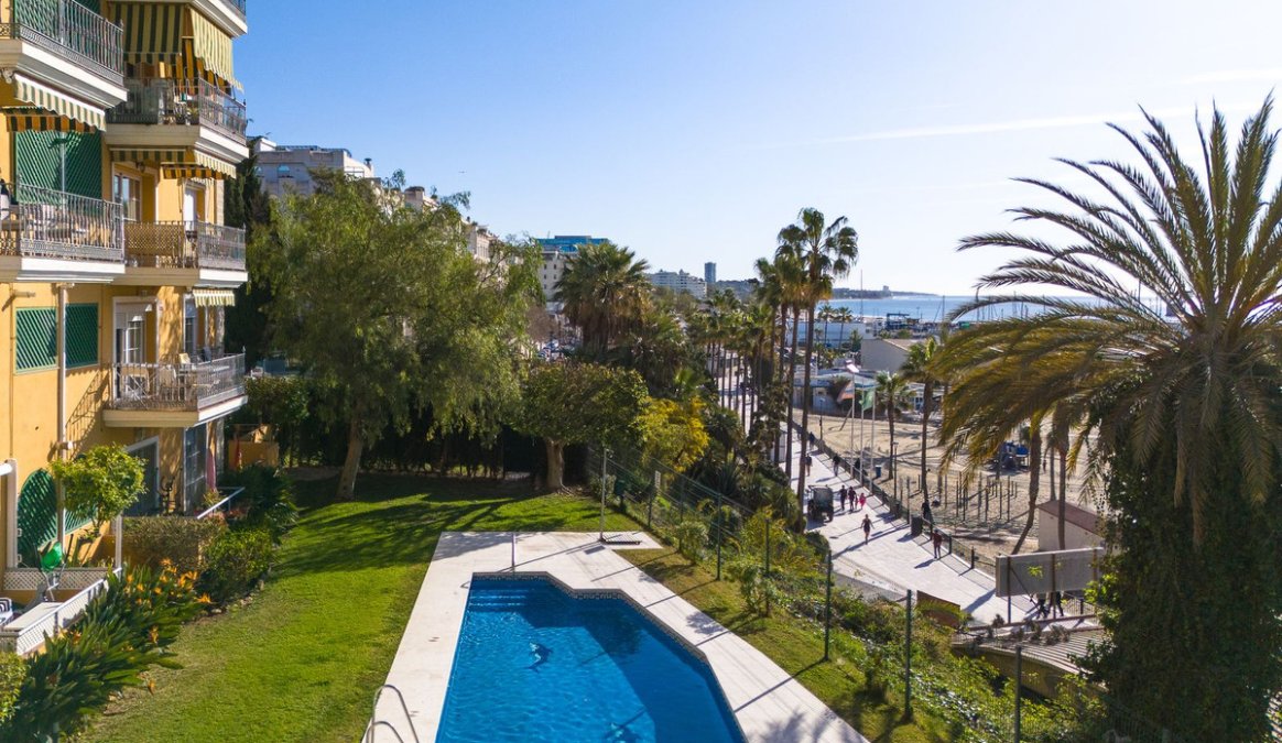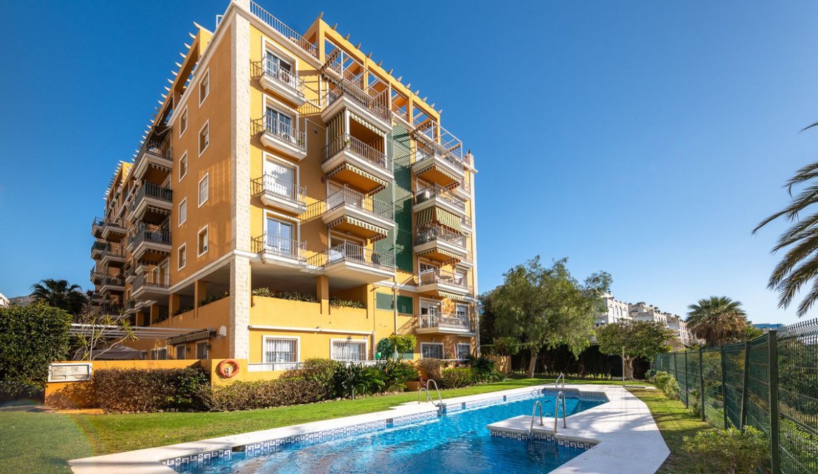 Estupendo apartamento en ALQUILER de 3 dormitorios y 2 baños completos (bañera y ducha), con una terraza ideal con vistas al puerto de Marbella, incluye plaza de garaje subterránea, en primera linea de playa en La Bajadilla.