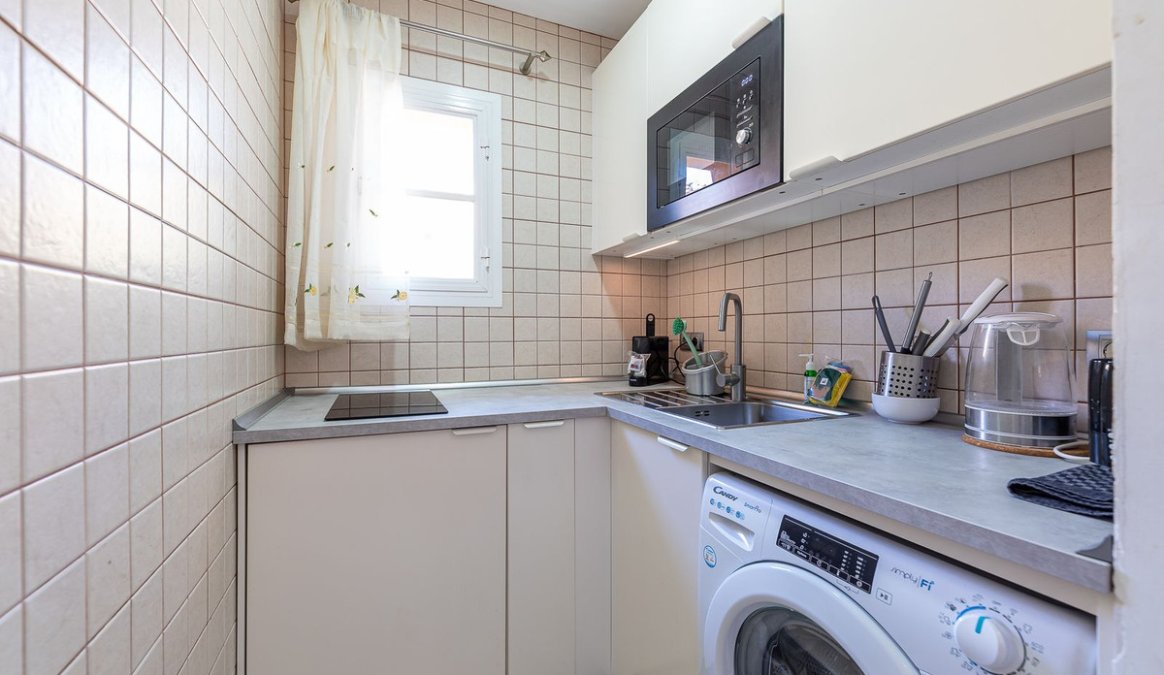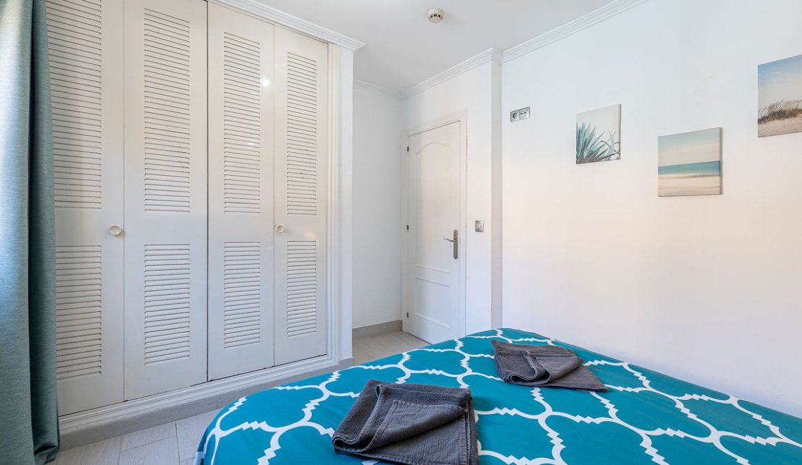 Más de 55 metros cuadrados construidos distribuidos de manera funcional y armoniosa con hall de entrada, dormitorio de matrimonio que cuenta con armario empotrado, baño completo que incluye bañera y bidé, cocina independiente; funcional y equipada, salón comedor y una generosa terraza que hará las delicias de tus invitados o huéspedes ya que , gracias a su fantástica orientación sur y al interior de la urbanización, disfrutarán de una agradable temperatura durante todo el día y de tranquilidad absoluta al estar alejada del ruido de la calle y con la zona de piscina estratégicamente ubicada a sus espaldas.