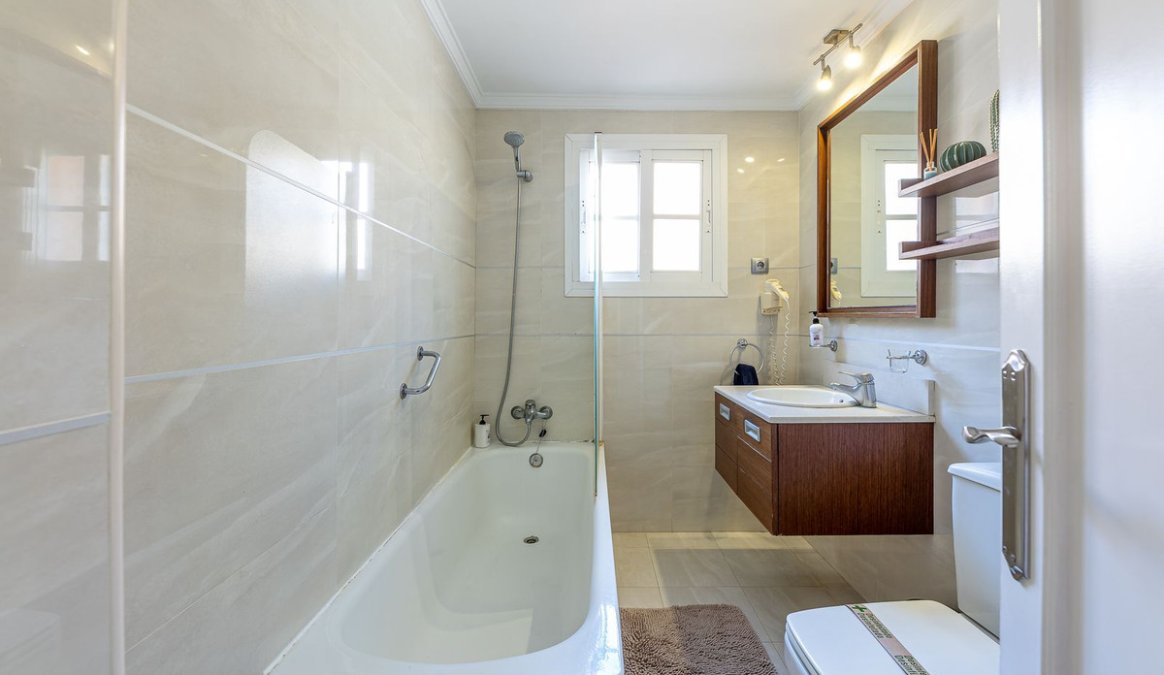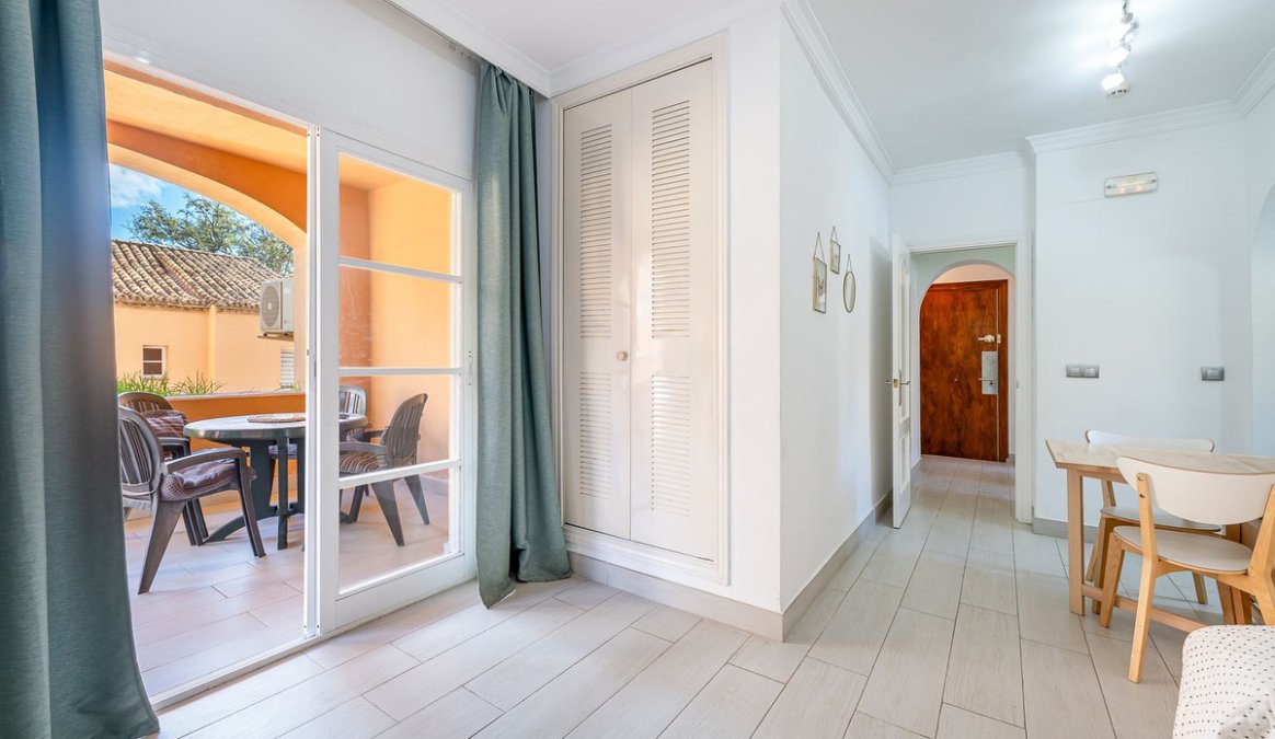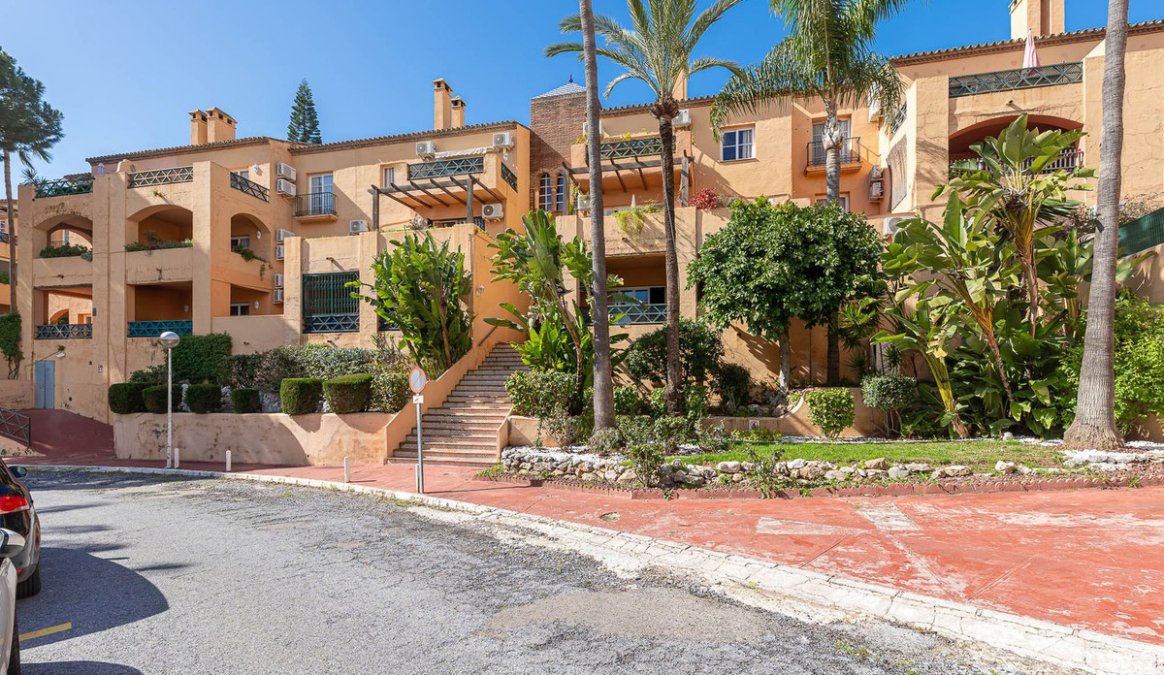 La urbanización es un oasis de servicios: disfruta de sus zonas comunes ajardinadas, dos amplias piscinas y el bar exclusivo para residentes. Aunque el edificio no cuenta con ascensor, su ubicación en planta primera lo hace cómodo y accesible. A todo esto hay que sumar que el apartamento es completamente exterior.