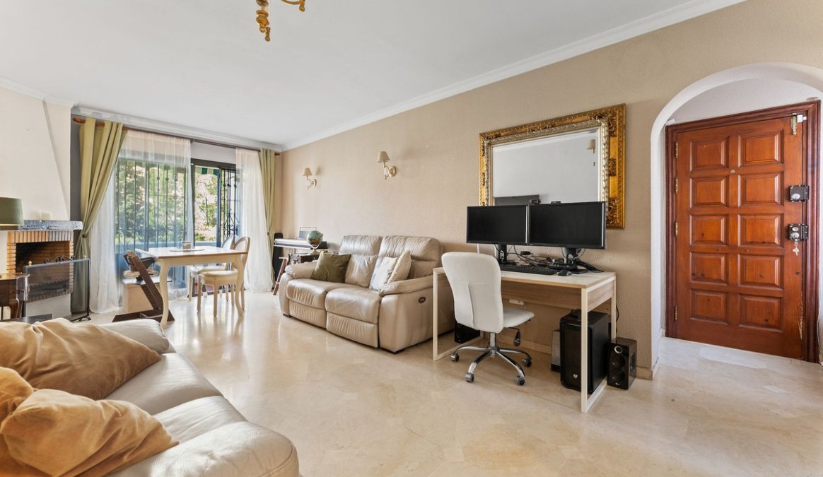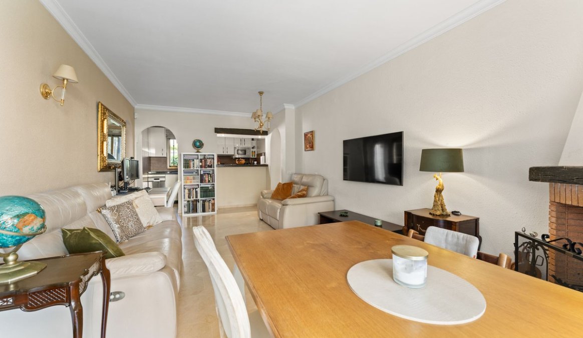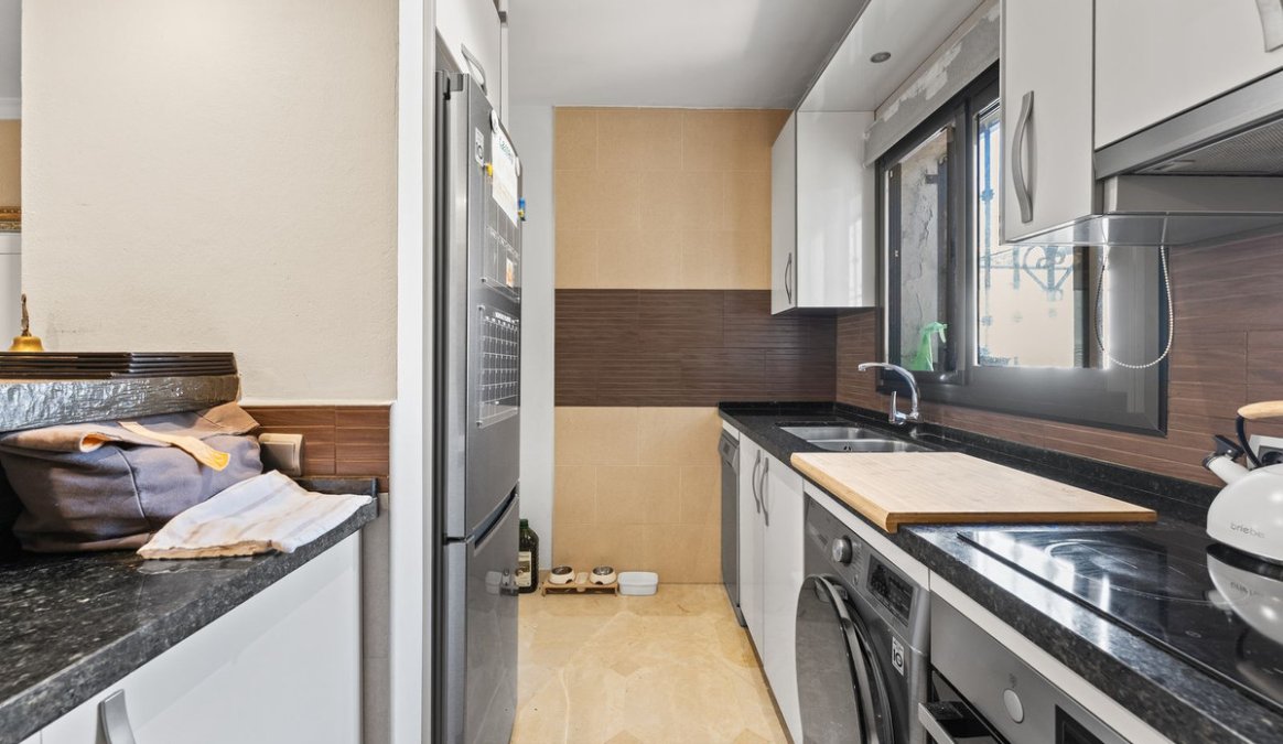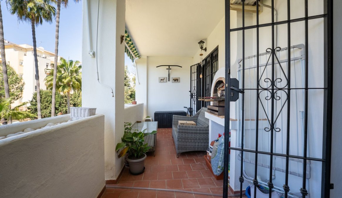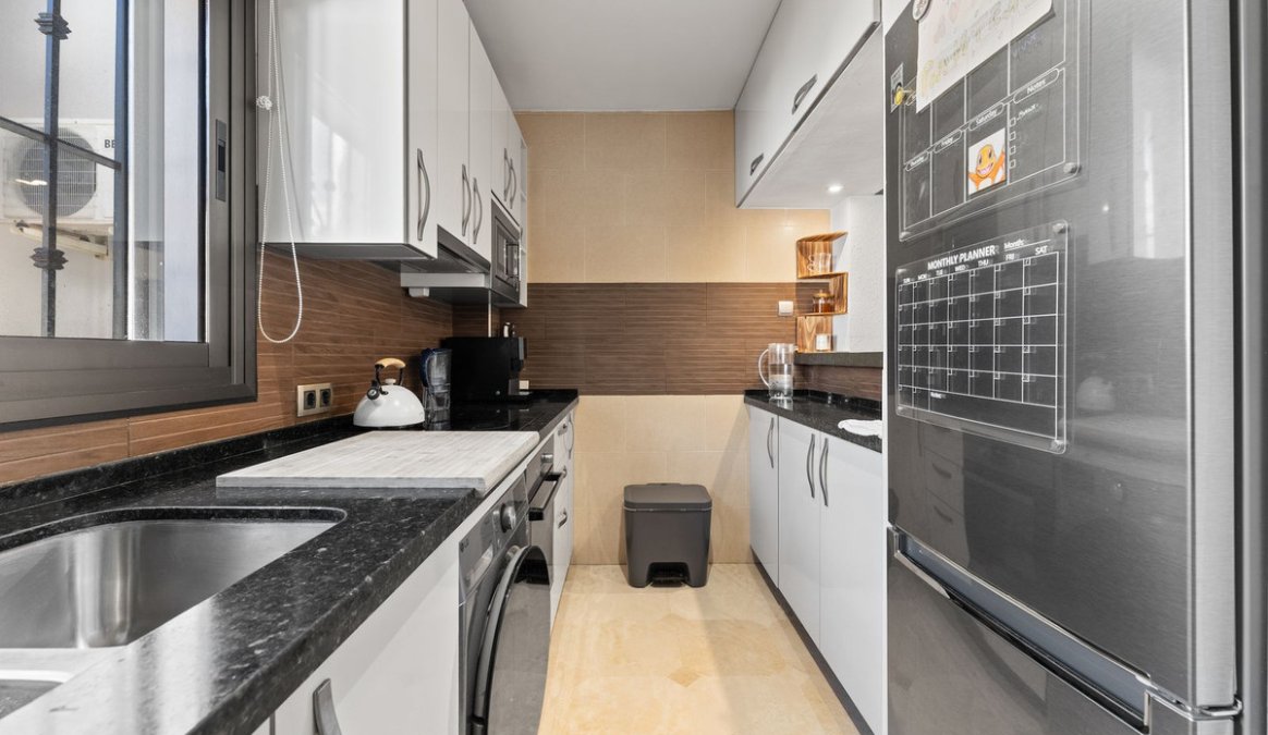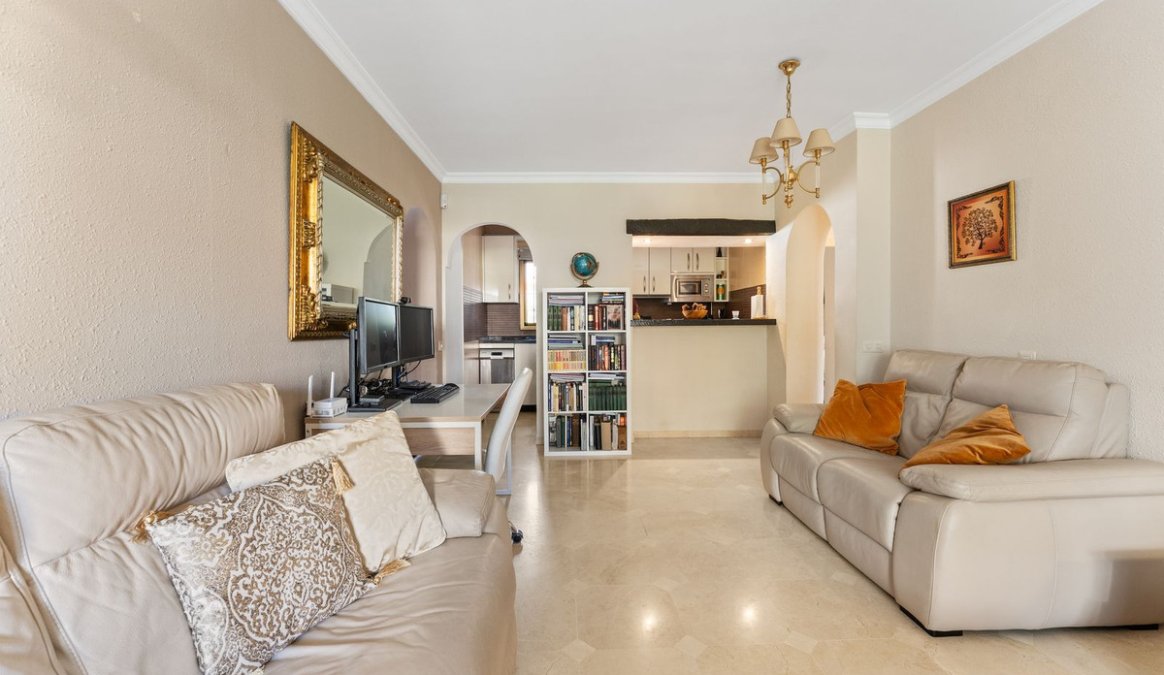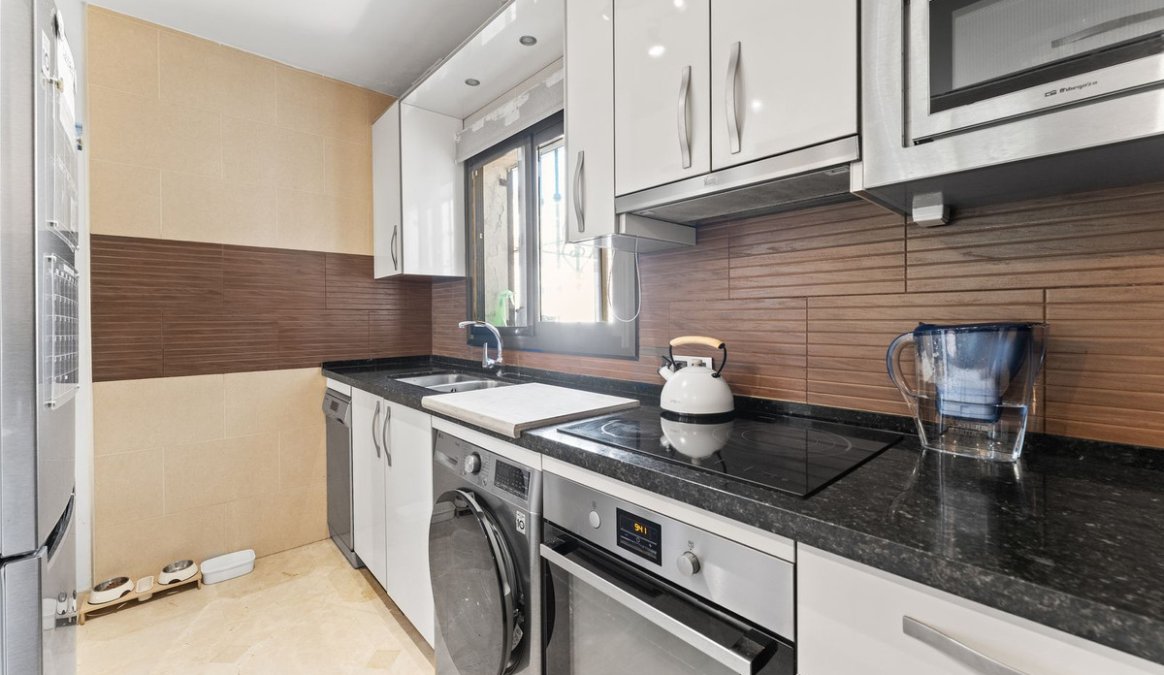La cocina ha sido renovada y los suelos de mármol aportan una sensación de calidad, frescura y elegancia atemporal. Desde la terraza cubierta, con orientación suroeste, podrás disfrutar de una agradable entrada de luz natural durante gran parte del día, con vistas abiertas hacia los jardines de la urbanización y un ligero toque de mar que suma encanto a la experiencia.