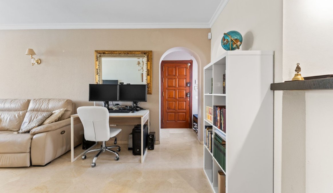 Imagina vivir en un entorno tranquilo, rodeado de jardines, con el mar a pocos minutos caminando y todos los pequeños placeres del día a día al alcance de la mano. Este apartamento en planta media, ubicado en la codiciada zona de Riviera del Sol, combina comodidad, calidez y una ubicación ideal para disfrutar del estilo de vida mediterráneo.