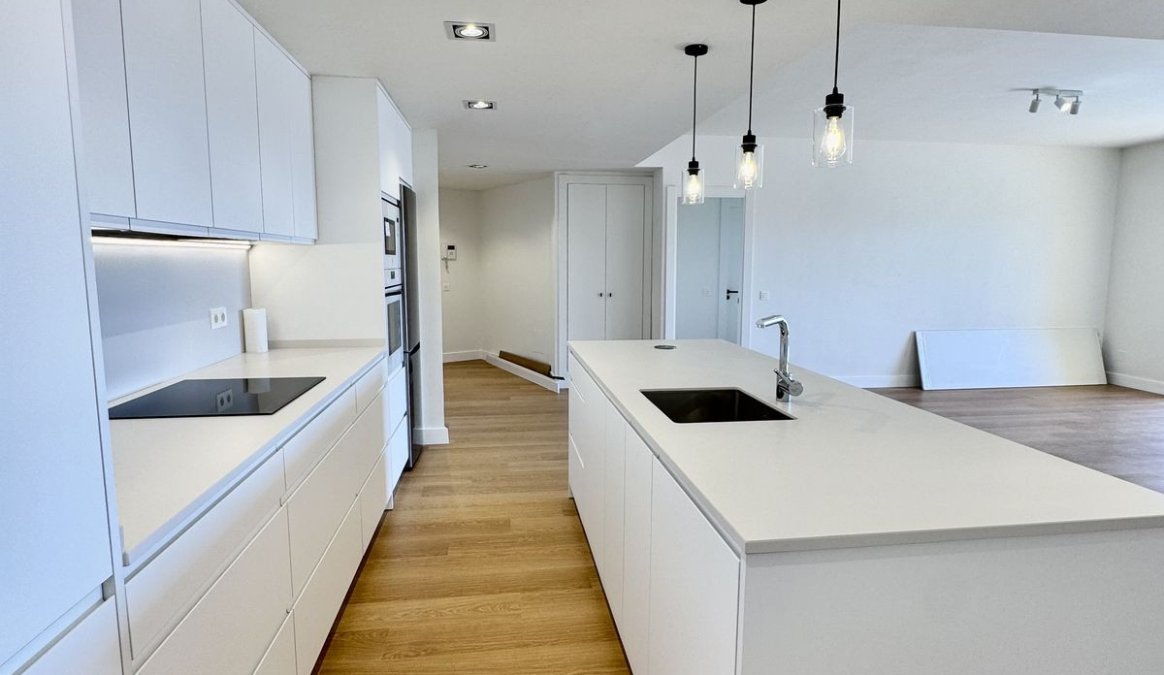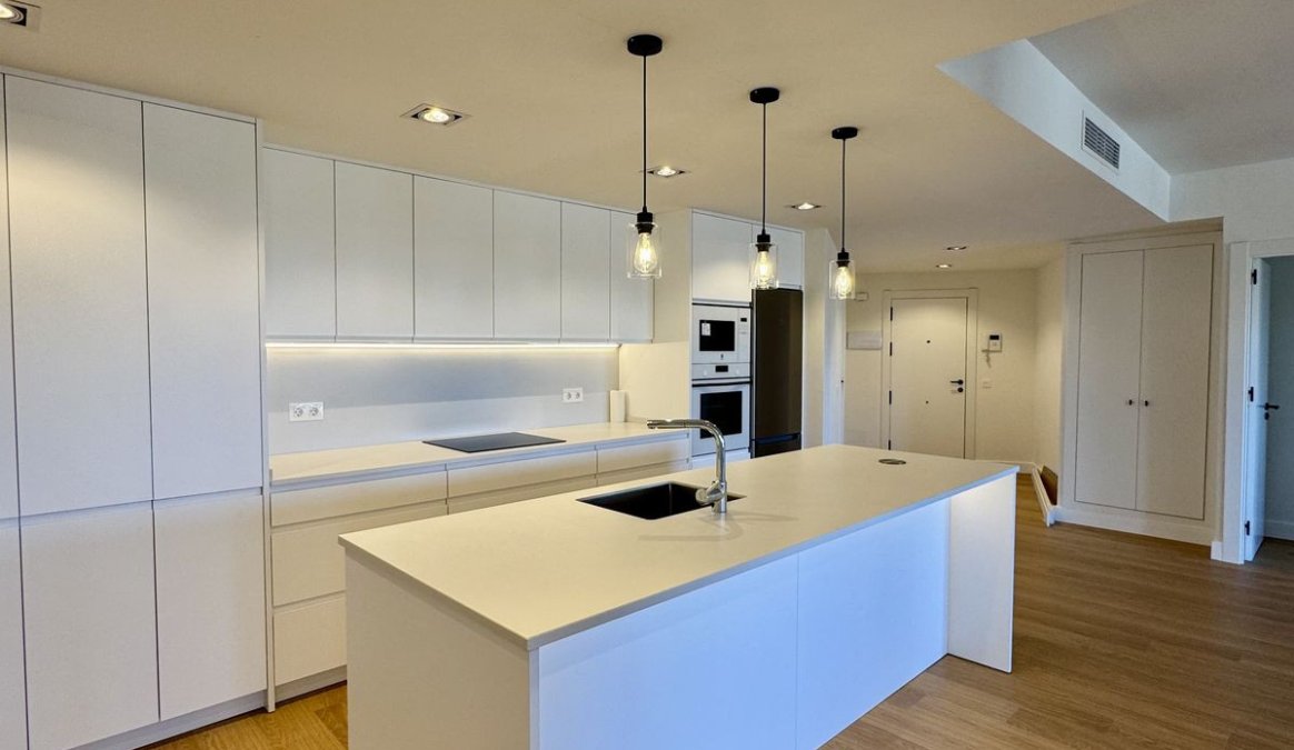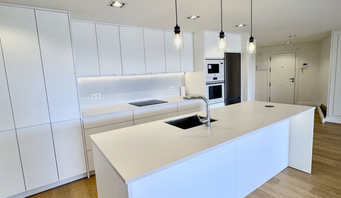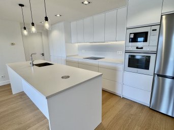 Precioso apartamento recién reformado con los mejores estándares de construcción, ubicado en una quinta planta, con vistas al mar desde ambas terrazas. Posee persianas eléctricas y aire acondicionado nuevo, frio/calor, tarima de madera y cocina totalmente reformada abierta al gran salón de la vivienda. Consta además de 3 dormitorios con dos amplios baños con ducha y un aseo. La propiedad se vende con una amplia plaza de garaje ubicada en el sótano con acceso desde el ascensor.