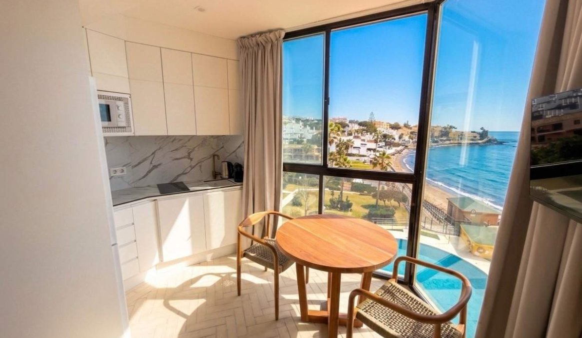 ¡Primera línea de playa, vistas al mar y pura luz! Espectacular estudio reformado en Calahonda.