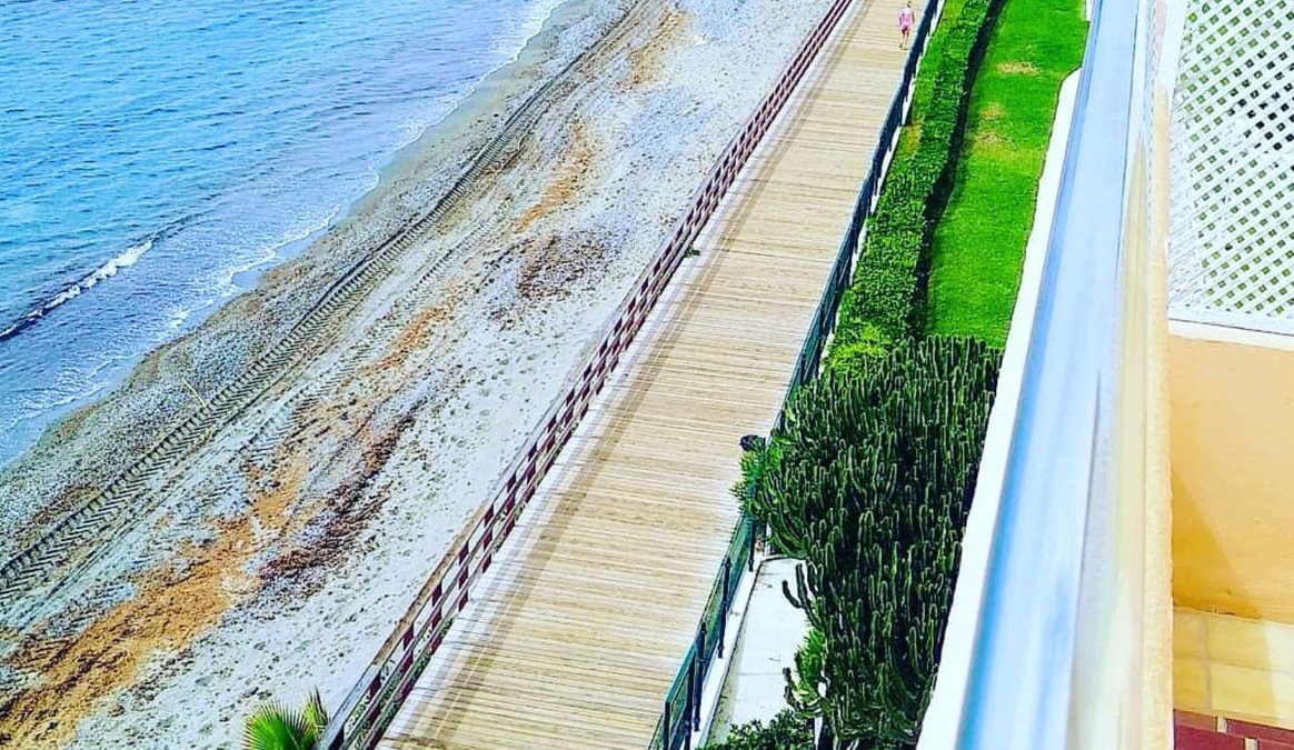 Se vende atractivo estudio en planta media de aproximadamente 40 m², completamente renovado y amueblado, ubicado en primera línea de playa en la exclusiva y tranquila zona de El Pirata, Estepona, a escasos pasos del mar y con acceso directo al paseo marítimo.