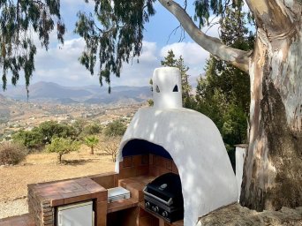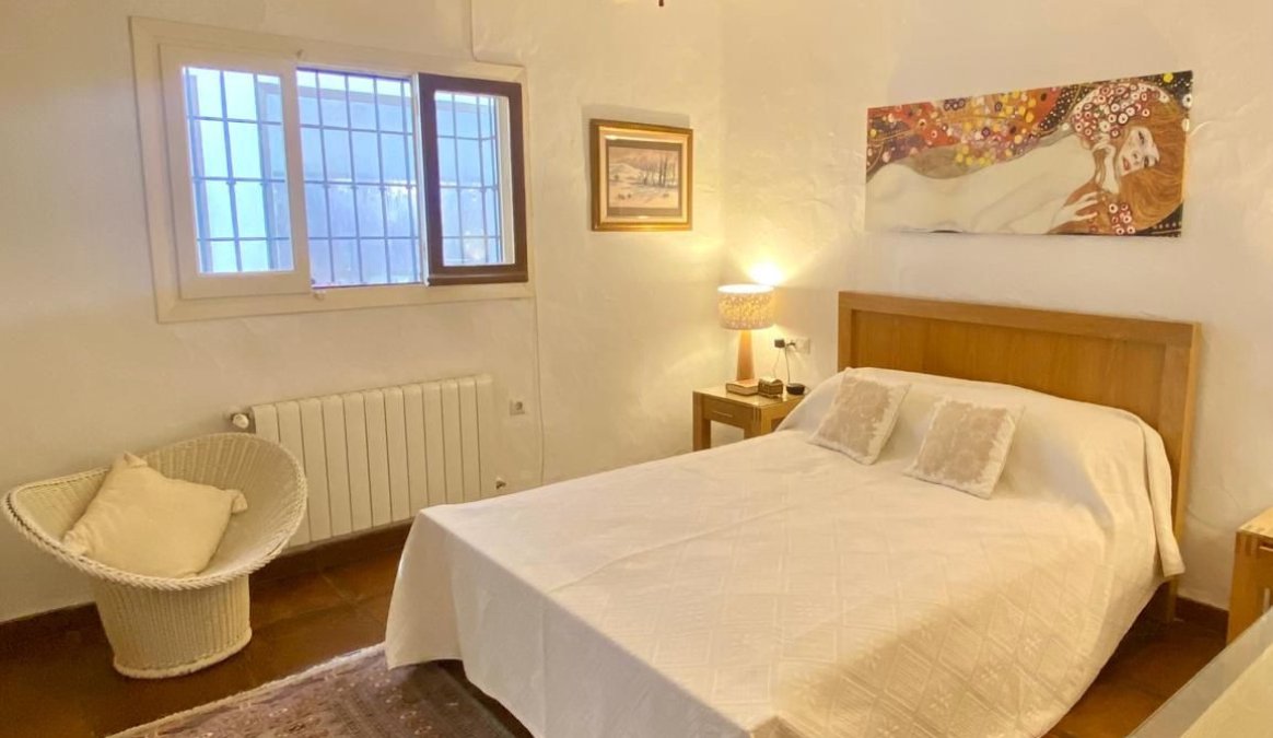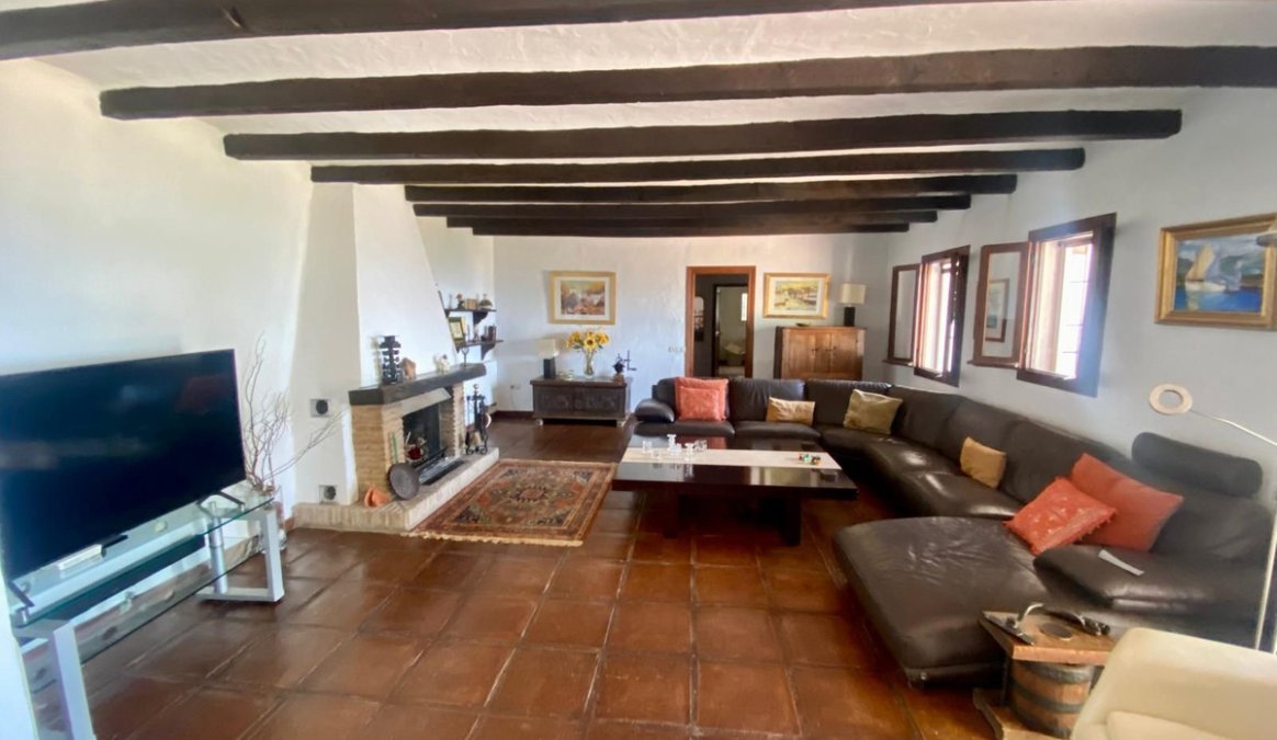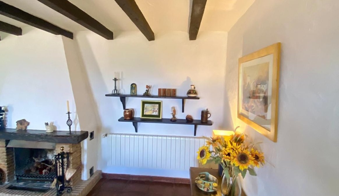 Esta finca de estilo tradicional se distribuye en una sola planta y tiene un acogedor ambiente rústico con techos abovedados y con vigas en muchas de las habitaciones, que mantienen la casa fresca en los meses de verano. La amplia sala de estar/comedor es luminosa y fresca en verano y durante las noches más frescas ocasionales durante los meses de invierno también se puede disfrutar de la chimenea. Es una mezcla bien equilibrada de un ambiente rústico acogedor pero luminoso con toques modernos en los baños y una cocina luminosa que se conecta con la sala de estar. La finca está orientada al este, al sur y al oeste con excelentes vistas para disfrutar desde cada ventana.
