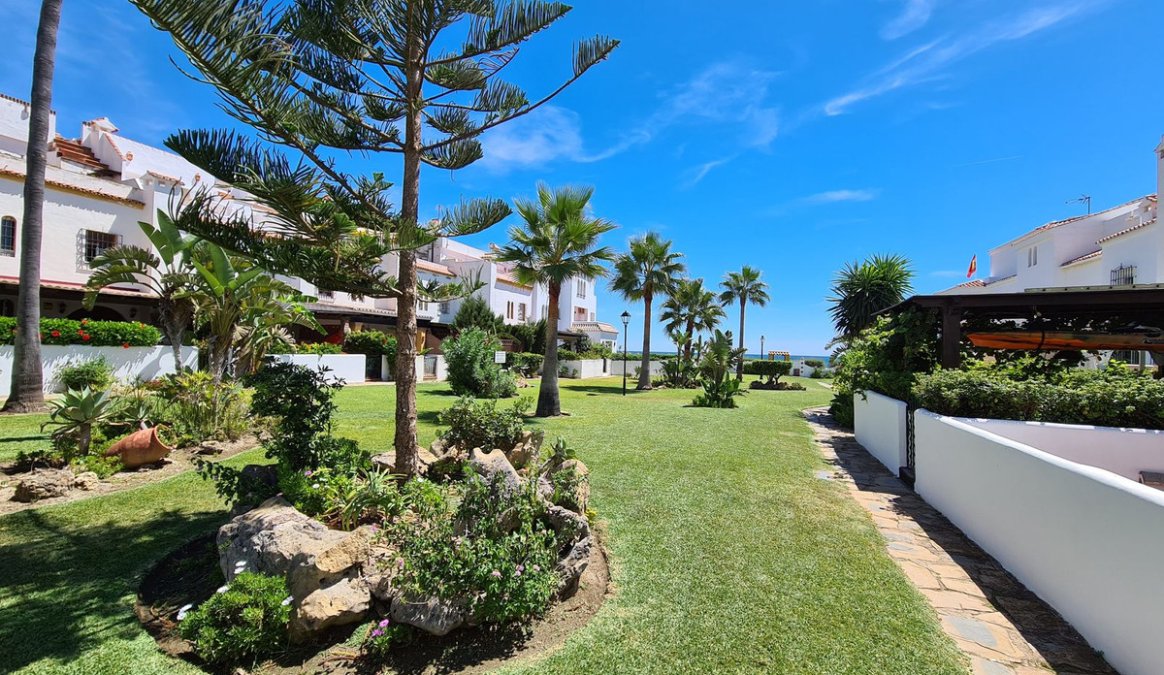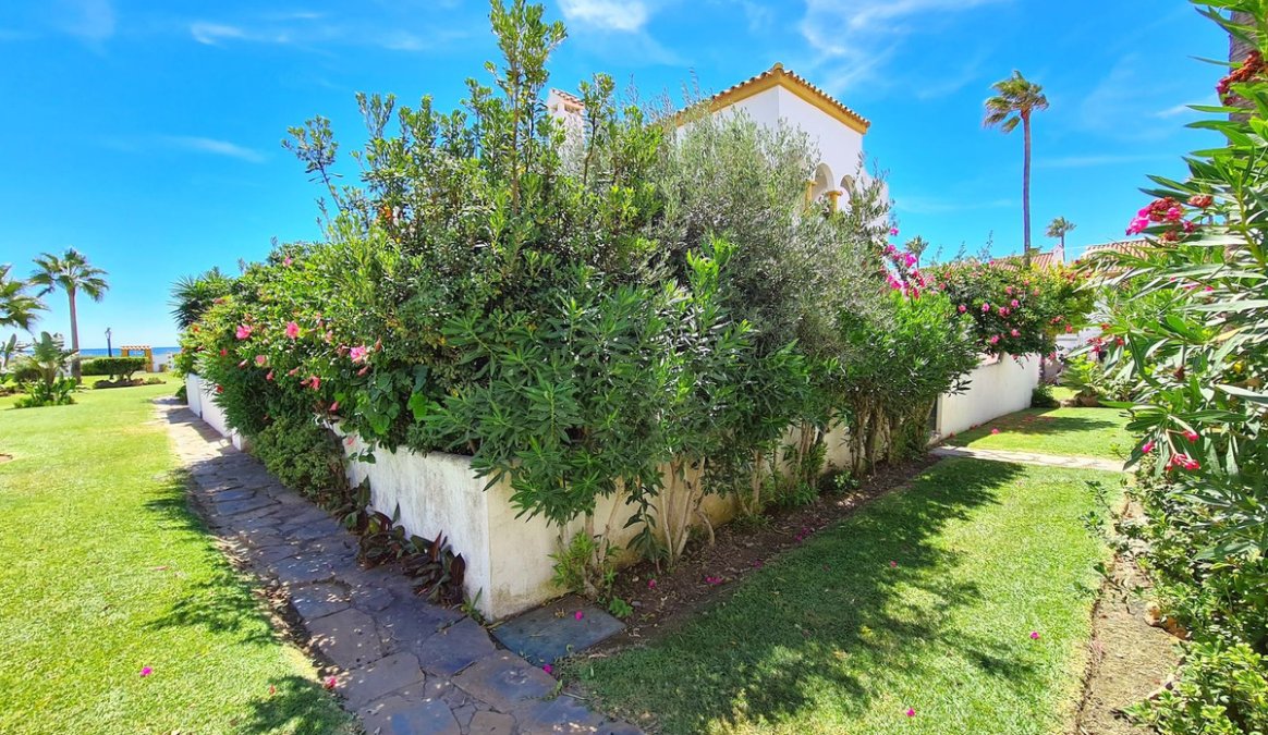 Con excelente ubicación en una urbanización en primera línea de playa con acceso a la Senda Litoral que conecta toda la costa del Sol y a la playa a tan solo unos pasos de la casa, cerca de supermercados, tiendas, restaurantes y gran variedad de ofertas de ocio. Con Sabinillas a tan solo 2 min en coche y a 10 min de Estepona, con el aeropuerto de Málaga a 90 min en coche. La propiedad se distribuye en dos plantas más el solárium, en la planta baja encontramos la entrada principal con un amplio recibidor, un aseo con ventana, una amplia cocina con acceso a la parte trasera de la terraza y un gran salón comedor con chimenea y acceso a un porche que conecta con el GRAN JARDÍN PRIVADO.