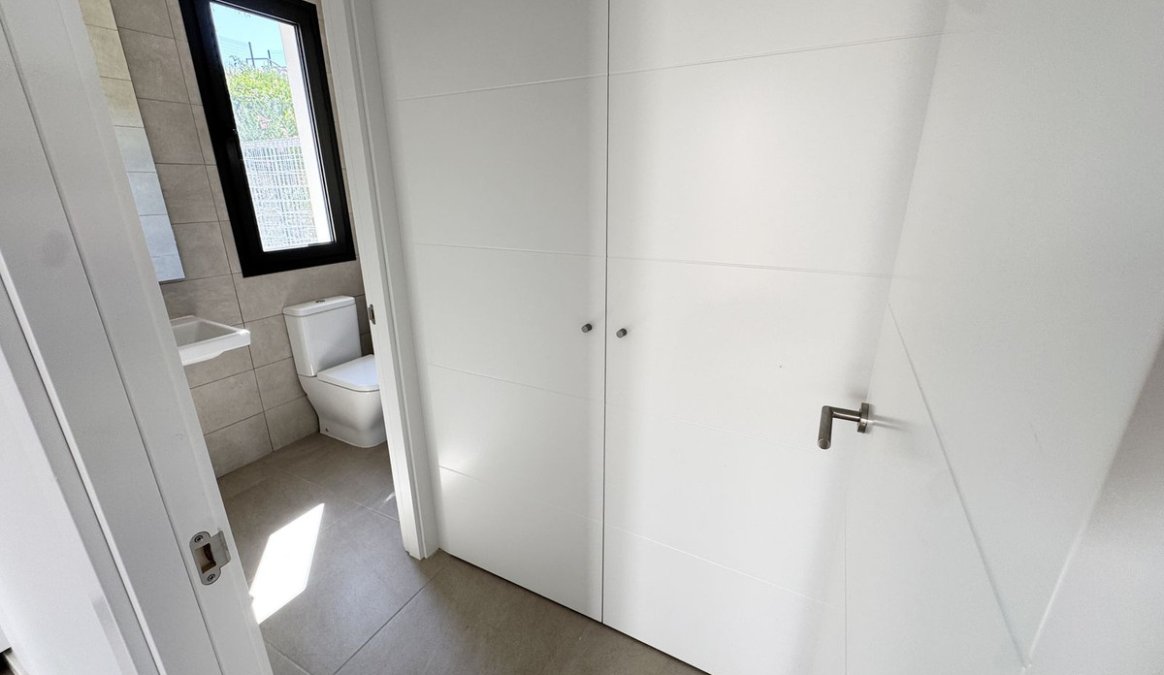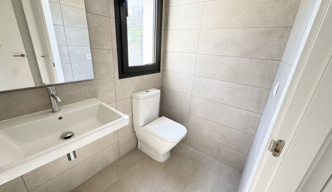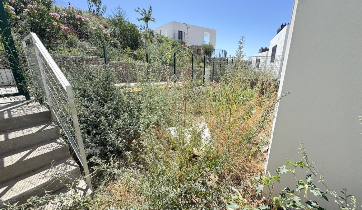 En el exterior, la villa cuenta con un jardín privado listo para ser ajardinado al gusto del comprador, brindando la oportunidad de crear un espacio exterior personalizado (hay ejemplos en las fotos de lo que se puede hacer). La urbanización también incluye acceso a una piscina comunitaria, ideal para disfrutar del clima soleado.