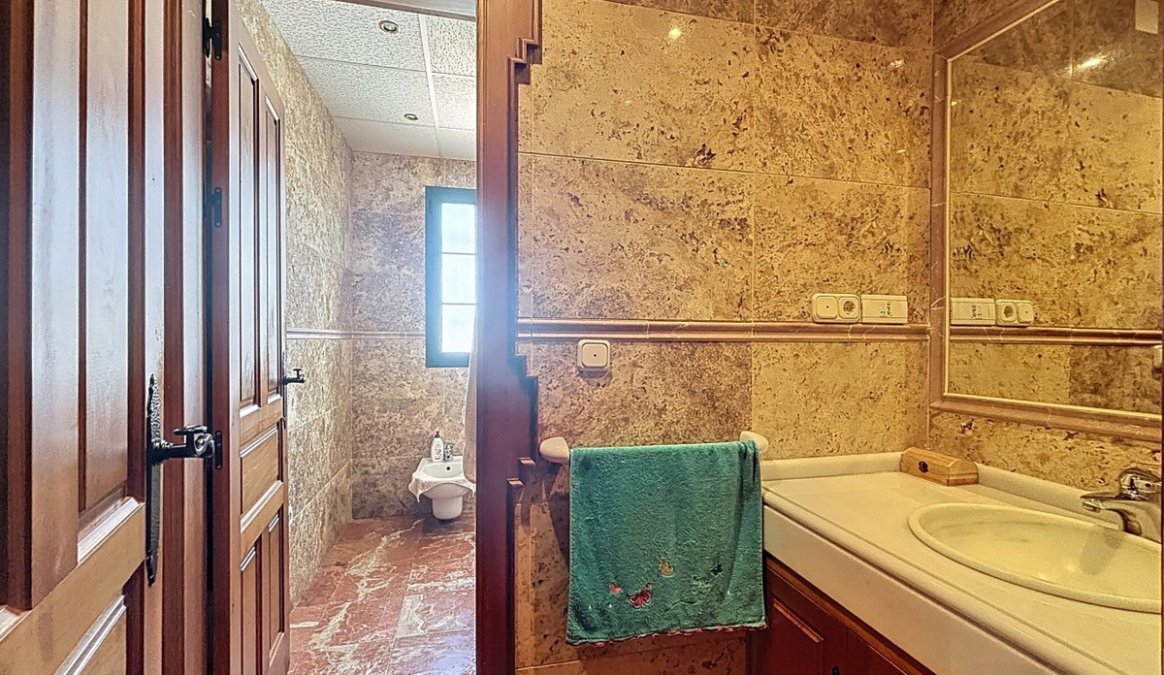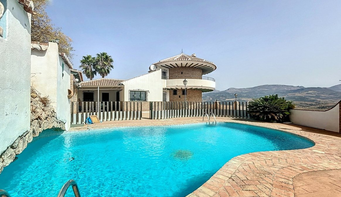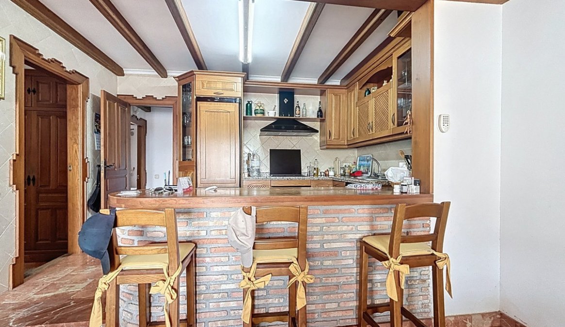 Esta encantadora villa en Los Romanes, Málaga, combina a la perfección la arquitectura tradicional española con el confort moderno. La vivienda principal cuenta con 4 dormitorios, incluido un amplio dormitorio principal, 3 baños completos, un aseo de cortesía, un lavadero y una bodega en el sótano, ideal para los amantes del vino. Las zonas de estar se distinguen por sus techos con vigas de madera, que aportan calidez y carácter. El salón principal destaca por su espectacular techo de madera en forma de sol, acompañado por una gran lámpara de forja. La chimenea y el mobiliario confortable crean un ambiente acogedor. Grandes ventanales y puertas francesas permiten que la luz natural llene los espacios, ofreciendo unas preciosas vistas al Lago de La Viñuela y al entorno natural que lo rodea. La propiedad incluye también un apartamento independiente para invitados, que dispone de 2 dormitorios, un baño y un acogedor salón-comedor con cocina americana, ideal para visitas o como alojamiento adicional.