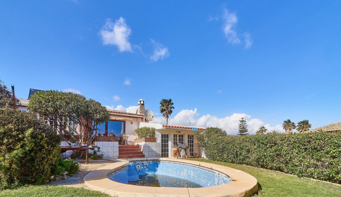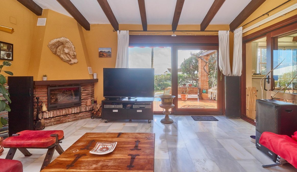 Ubicada en la consolidada urbanización del Faro, a escasos metros de la playa y situada sobre una de las mejores parcelas, brindándote impresionantes vistas panorámicas al mar y la montaña, se encuentra esta encantadora villa de estilo andaluz. La propiedad rezuma calidez y carácter, con suelos de mármol, vigas de madera a la vista y arcos de ladrillo que realzan su acogedor ambiente.