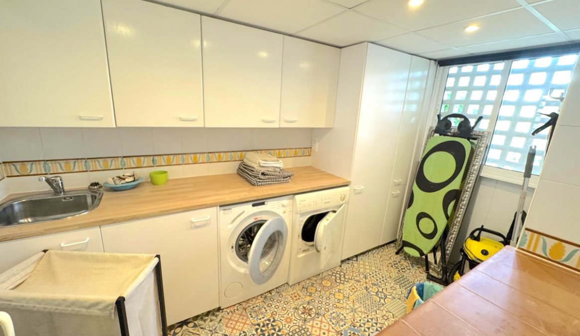 The independent kitchen is a true gem: fully equipped with the latest technology from top brands, including a large refrigerator, built-in oven, microwave, and dishwasher, as well as a spacious laundry room, perfect for storage and everyday use. The kitchen is designed to make both everyday cooking and entertaining guests effortless and enjoyable.