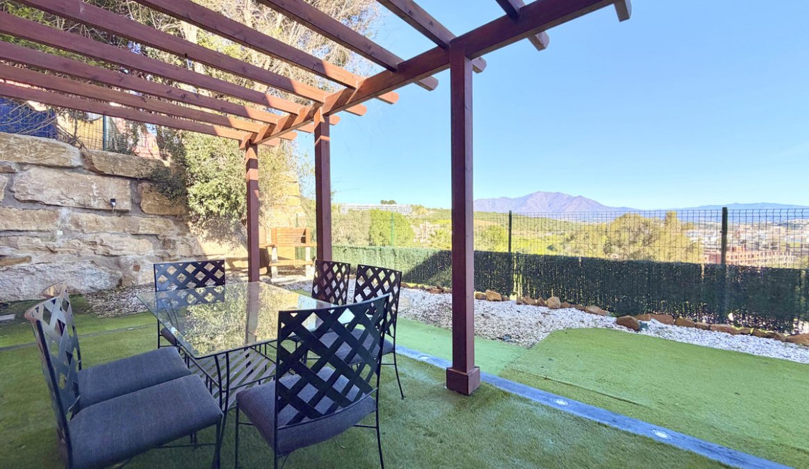 The standout feature is the large private garden overlooking the golf course, with open views of the Mediterranean and surrounding mountains — perfect for enjoying the Costa del Sol lifestyle all year round.