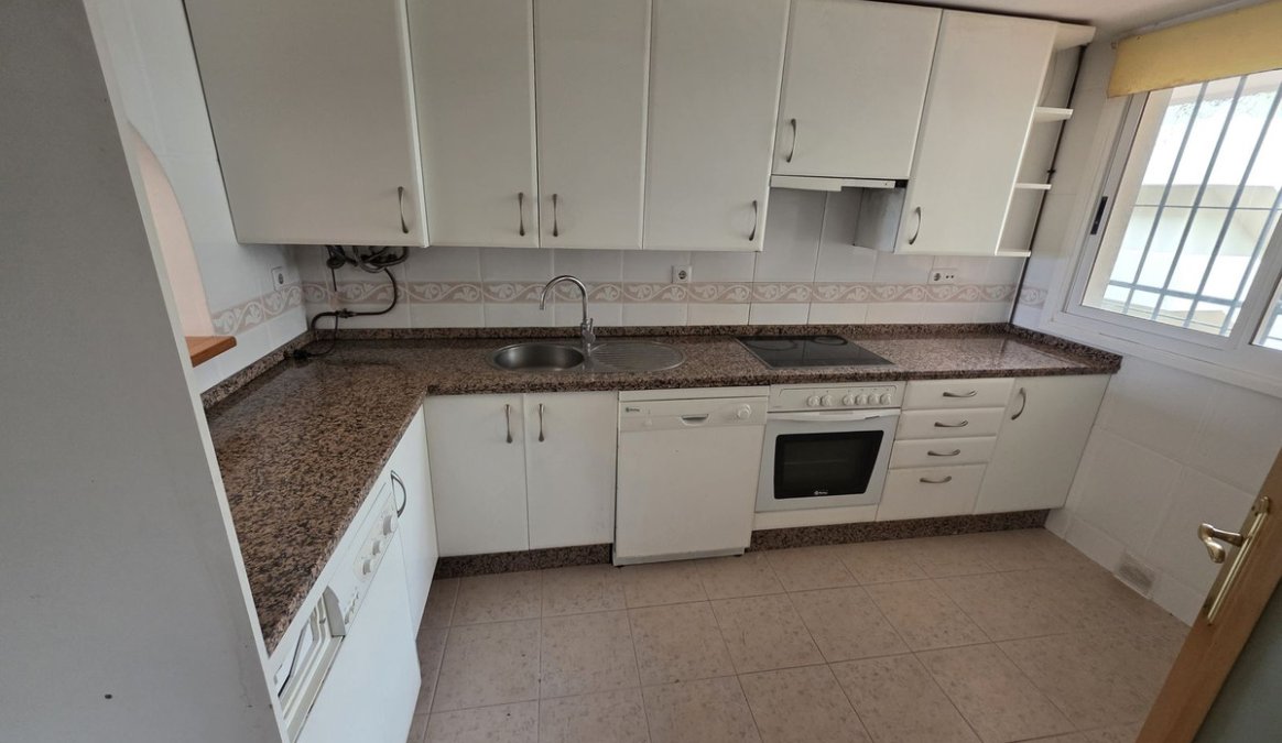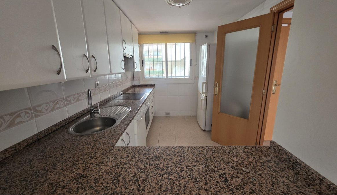 The property offers a spacious and bright entrance hall leading to the dining room and a spacious living room with direct access to a large terrace, with the possibility of glazing. It has two bedrooms, both with access to the terrace, and two bathrooms, one of which is en-suite in the master bedroom. The separate kitchen is fully equipped and has a window to the outside.