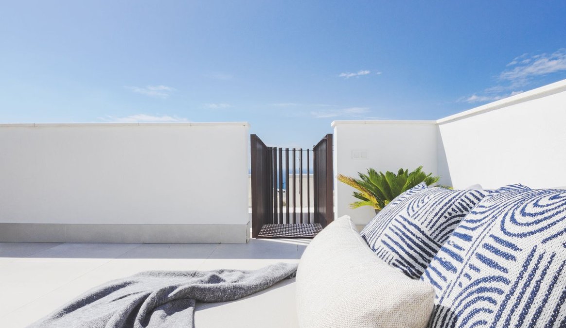 The property consists of 2 spacious bedrooms. The designer kitchen is open to the living room. From the living-dining-kitchen room, we have access to the main terrace of 27m2, and from this terrace we access the solarium floor, where we have a barbecue and a jacuzzi for 4 people.