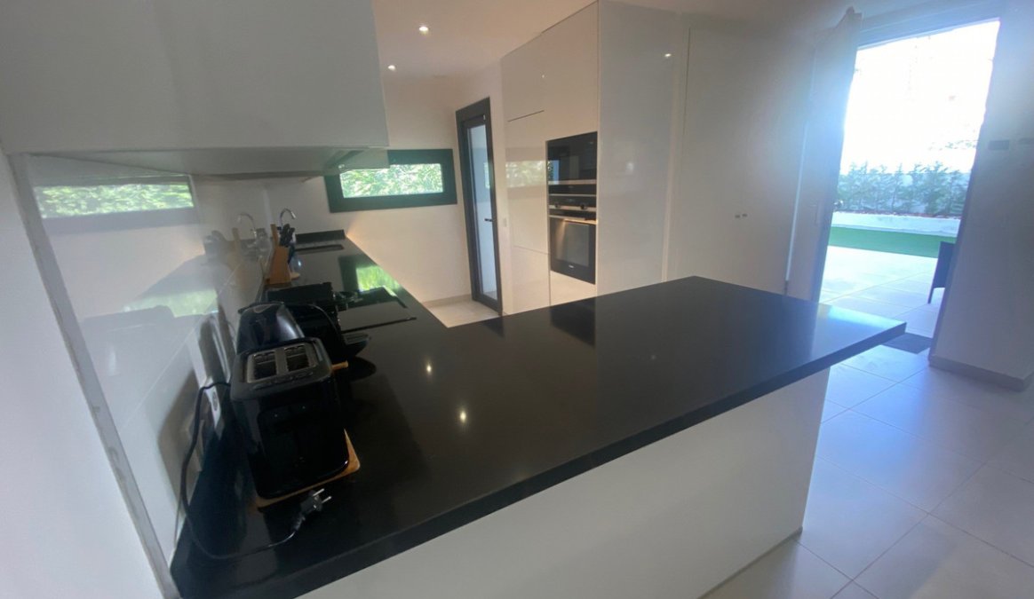 The interior offers a bright living-dining room with direct access to the terrace, next to a modern open-plan kitchen, equipped with high-end appliances and a laundry area. From this floor, you can also access the basement, where you will find the garage and storage room, as well as a practical storage area, an added value that is rare in this type of property.