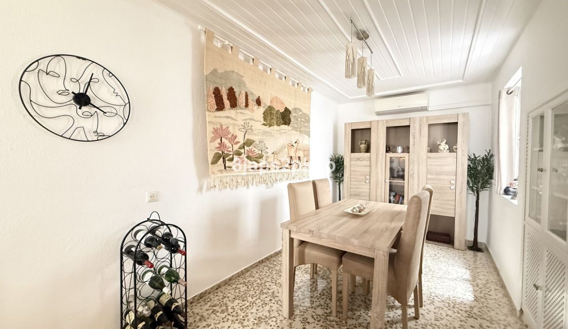 The property is filled with natural light throughout and features a spacious lounge alongside a large dining room, perfect for entertaining or relaxed living. Two internal covered patios provide peaceful, private outdoor spaces, enhancing the home’s traditional Andalusian charm.