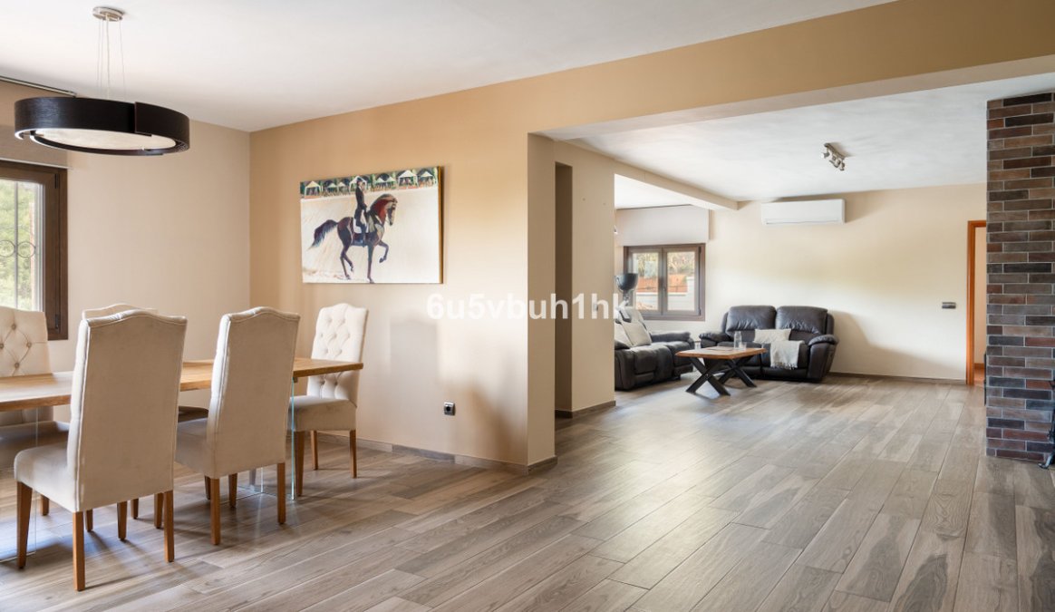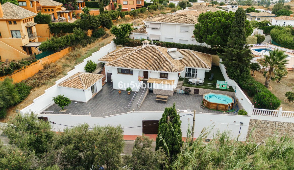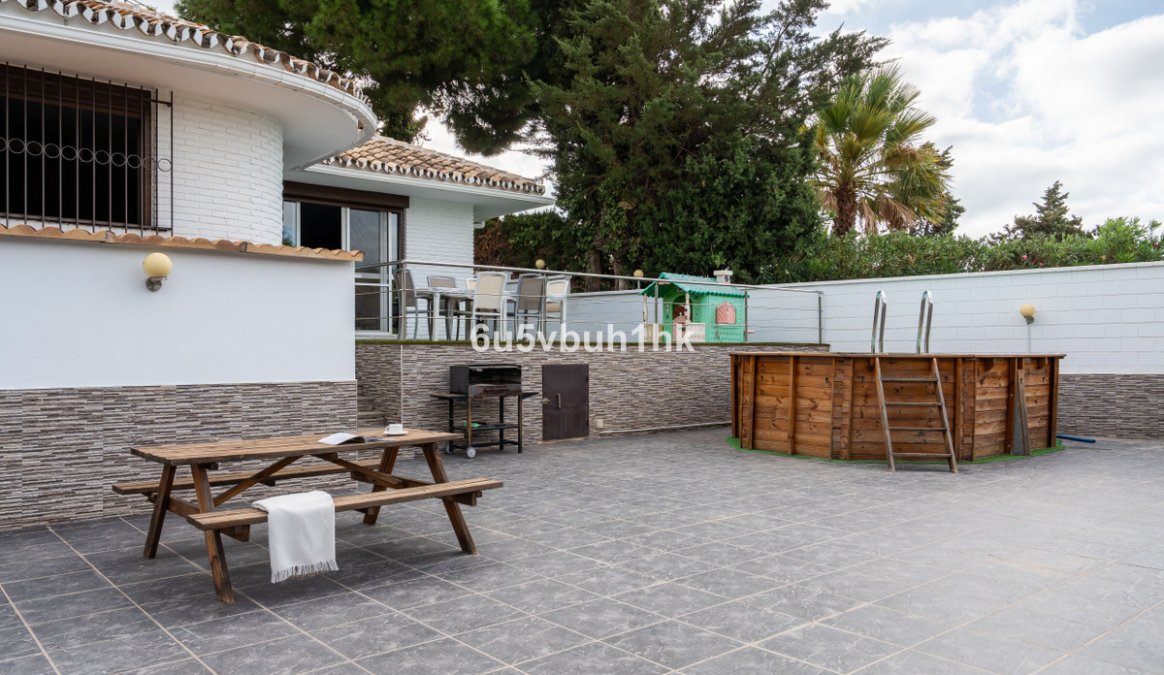 In Capellanía, a quiet and well-connected area of Benalmádena, this property offers a 658 m² plot and 168 m² built area. In the main house, you’ll find 3 bedrooms with 3 full bathrooms. The master suite, with its spacious walk-in closet, is the real showstopper. The home also features a large, fully equipped kitchen and a bright living-dining room filled with natural light. An independent guest house (1 bedroom + 1 bathroom) adds flexibility and plenty of possibilities. Outside, a raised wooden pool awaits—perfect for summer and easy to maintain—along with private parking for several vehicles. Features: PVC windows with double glazing, air conditioning in both houses, solar panels with a storage tank in the main house, and a 100 L electric water heater in the guest house.