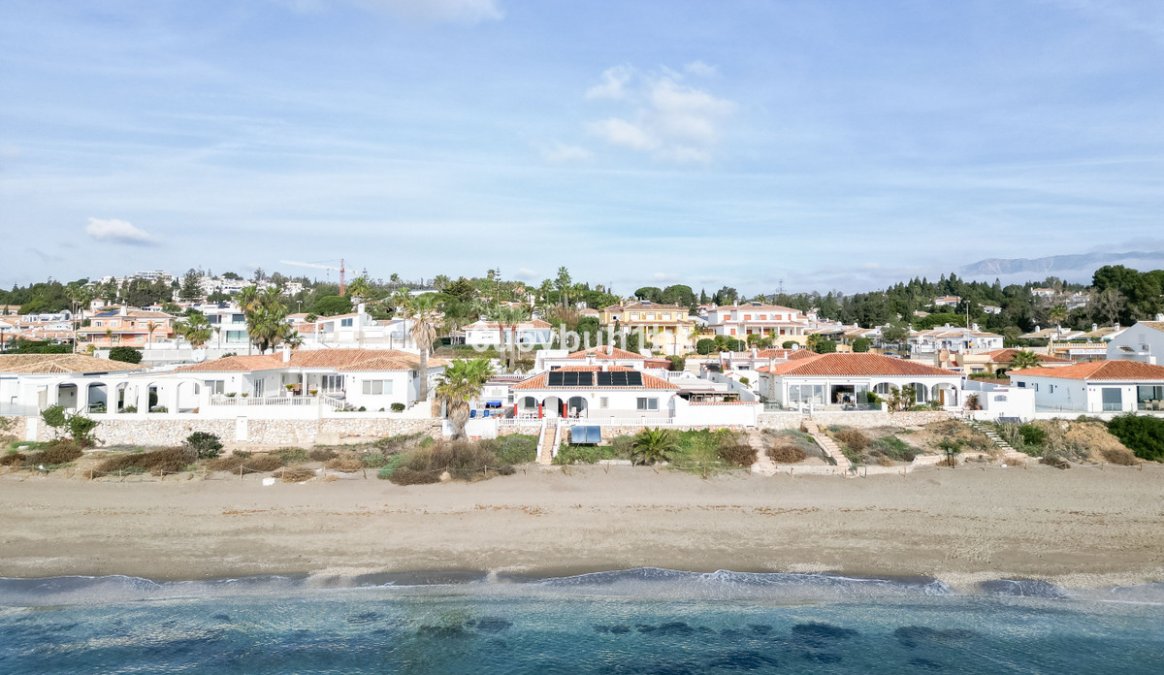 The villa is located on the beachfront, offering stunning sea views with its own access to the beach. In addition, it has a large private terrace, from where you can enjoy the views and relax outdoors.