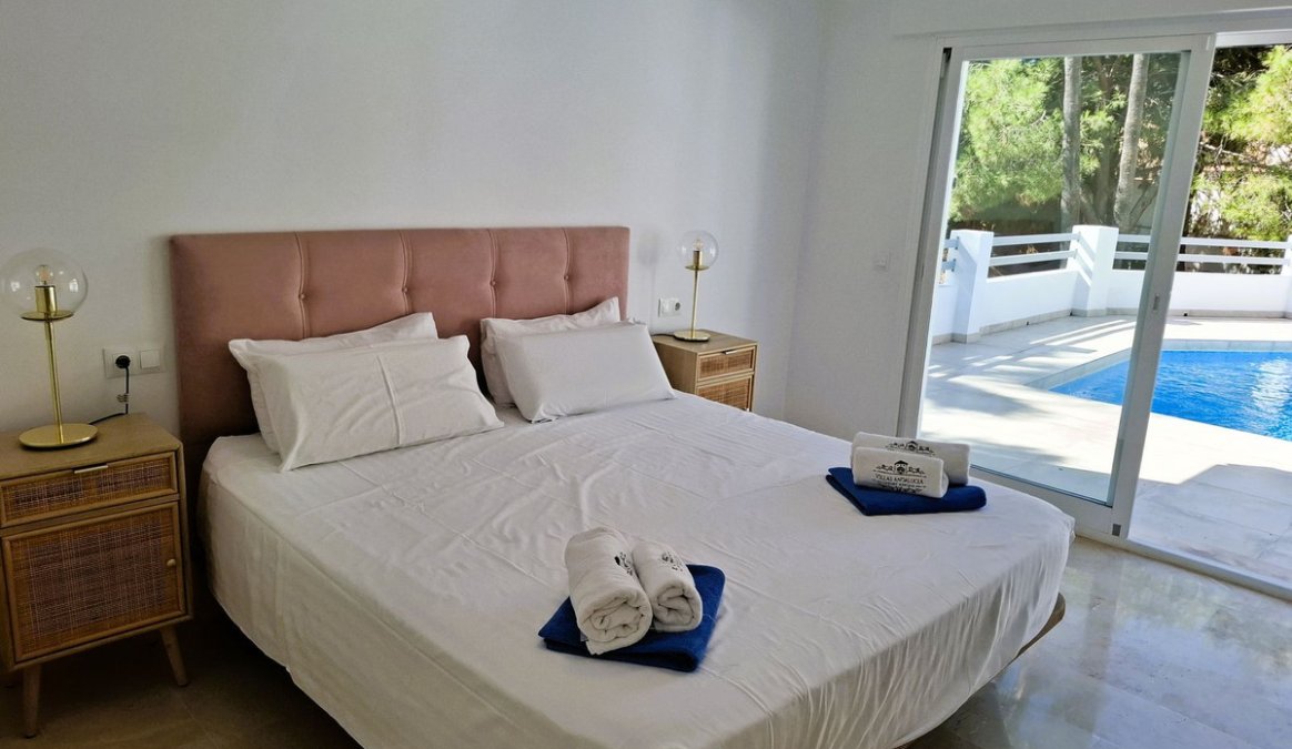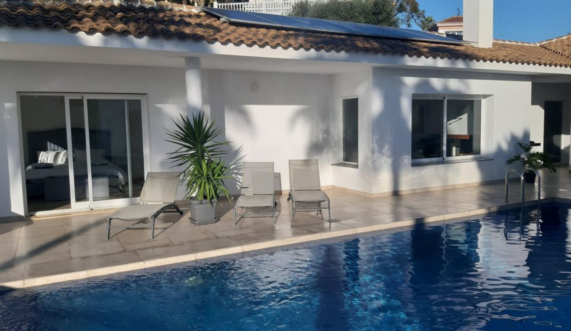 * Main house: 4 spacious double bedrooms and 3 full bathrooms on one level (approx. 230m2), with direct access to the pool from 3 bedrooms, without any steps!