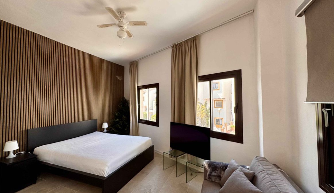 Upstairs, the bedrooms are spacious and elegantly finished, each with luxurious en-suite bathrooms. The master suite and second bedroom enjoy private terraces with attractive views towards the Mediterranean—ideal for relaxing or entertaining.