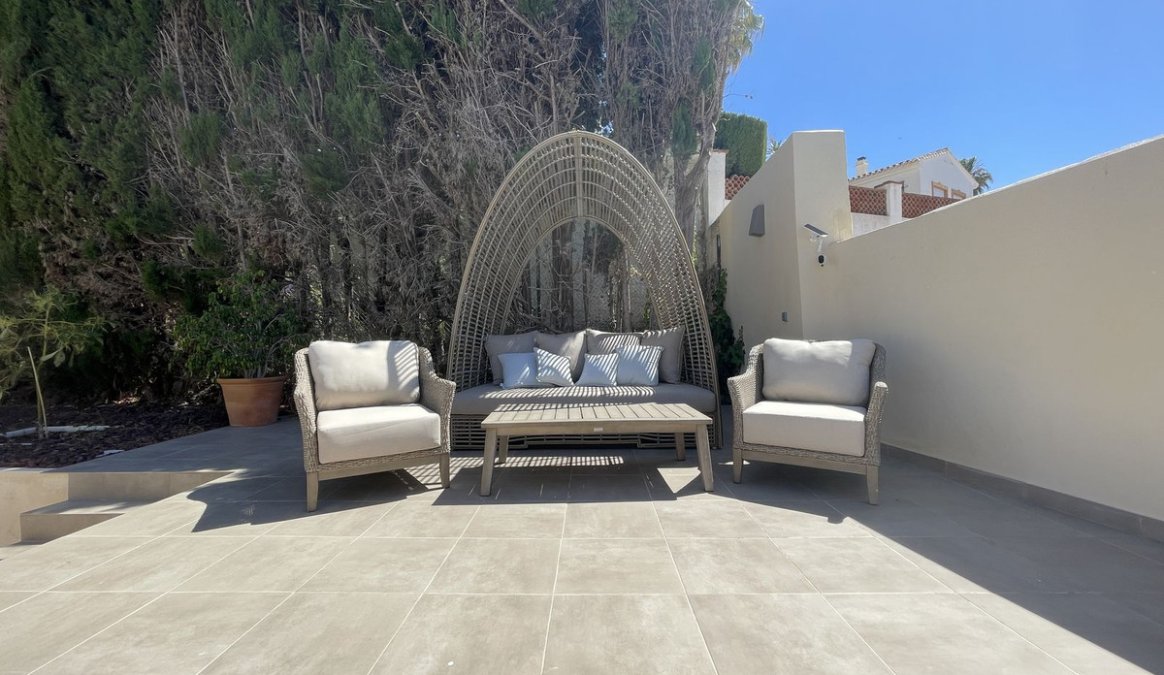 This beautifully renovated property offers four generous bedrooms, four stylish bathrooms, and a separate self-contained apartment—ideal for guests, extended family, or rental income potential. Finished to an impeccable standard, the villa features marble flooring, air conditioning, double glazing, underfloor heating, and an integrated Sonos sound system, delivering both comfort and sophistication throughout.