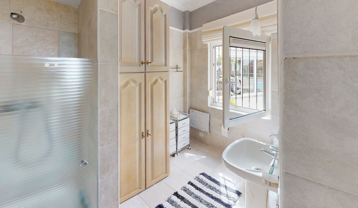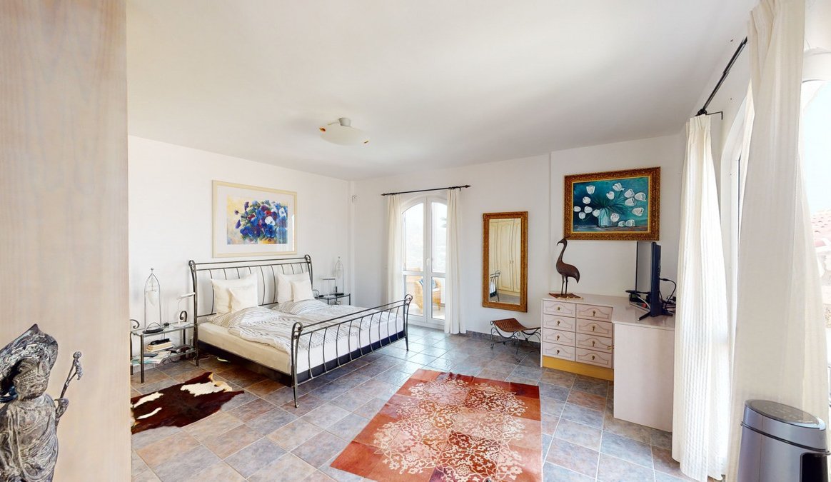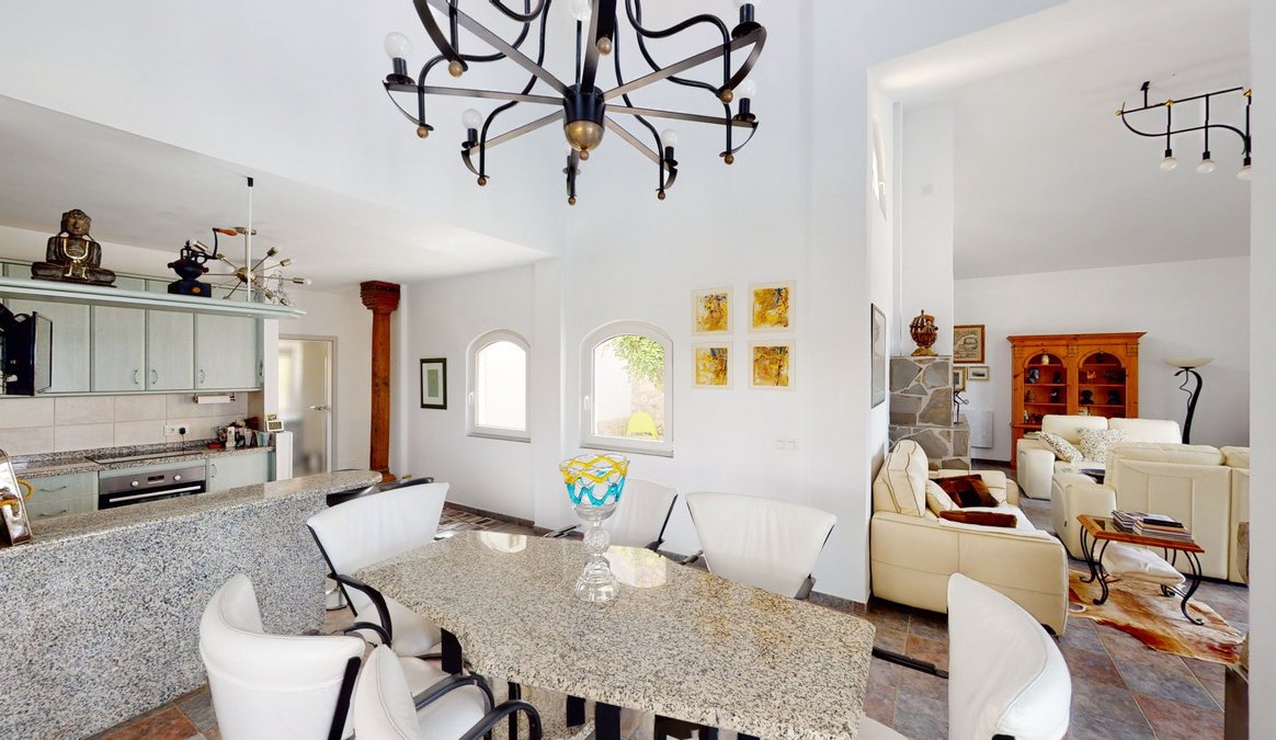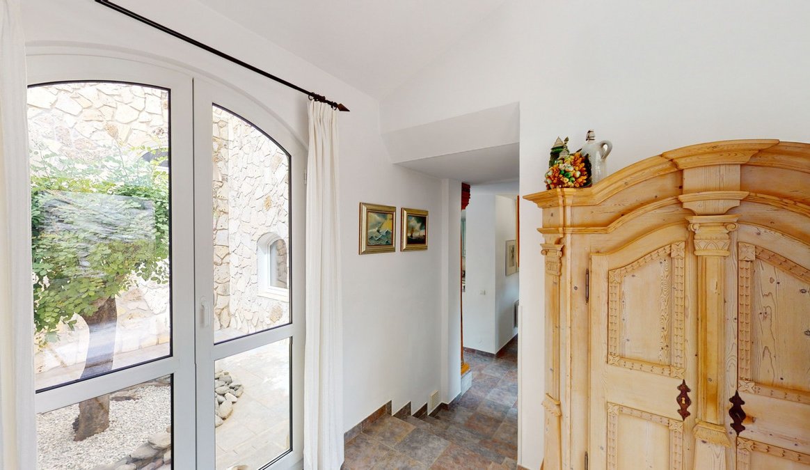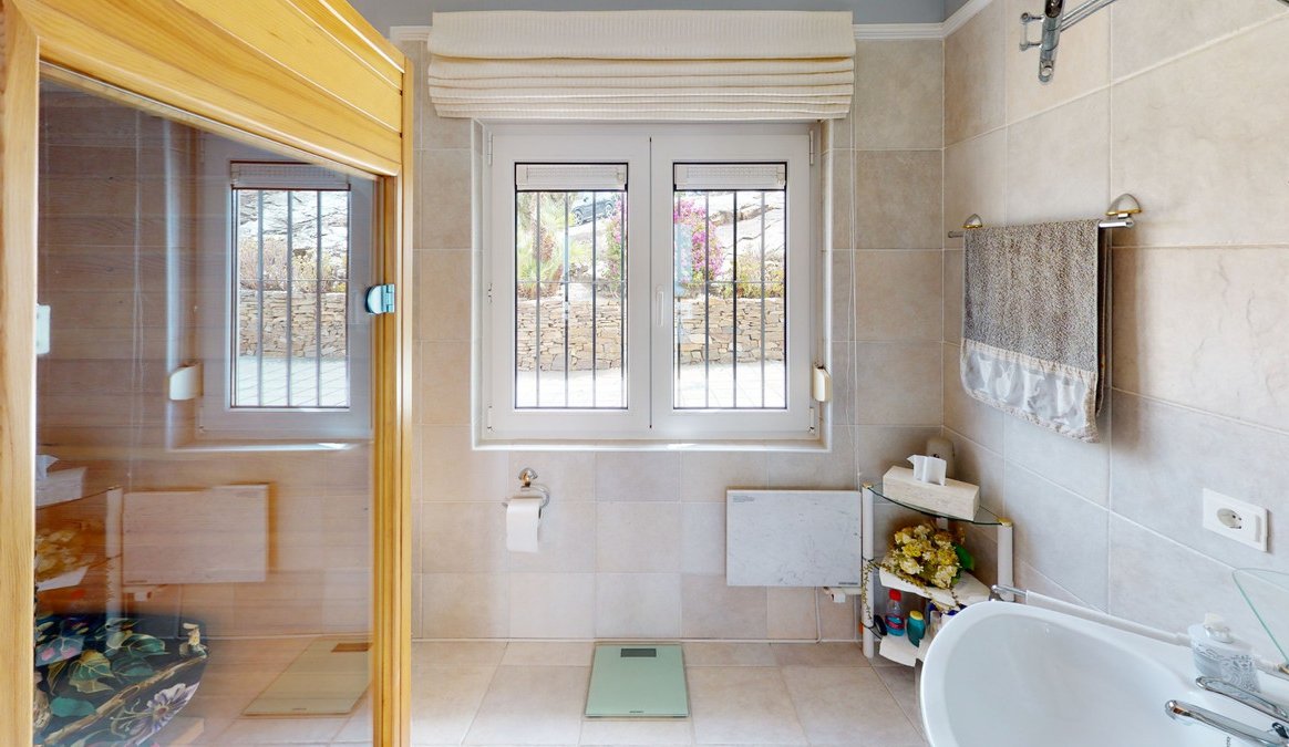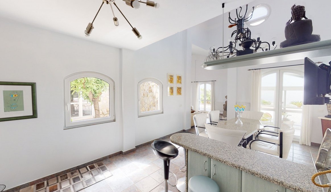 If it ́s your dream to live in a fantastic, high quality built villa with a pool and breathtaking sea views, then you have found the right property. This 280 m2 luxury villa offers everything you could possibly want. In the centre of the modern villa mixed with Andalusian style is a charming patio, which gives the house a special accent and provides beautiful lighting and atmosphere. It links the entire lower area of the property. From the entrance area, one side leads to a room used as an office, as well as a bedroom with an on-suite bathroom and the spacious living room with a fireplace and sea views. This in turn is adjacent to the dining area and the kitchen, from which you enter the hallway that is connected to the entrance area. This hallway also leads to the dressing room with an on-suite bathroom, where there is a sauna. Stairs lead from the entrance to the second floor. Here you will find the large master bedroom with an on-suite bathroom and a winter garden. External stairs lead to the outdoor area, which gives this room a separate entrance. The wonderful outdoor area offers a double garage, as well as a laundry room, which is also used for storage.