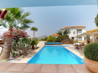 Right next to the inviting pool is a gym with bathroom, as well as a glass fronted annex that serves as a lounge area with an outdoor kitchen. The perfect place for celebrations and dinners with family and friends. On the 19,500 m2 property there is also a paddock, with shelter and its own driveway, for keeping horses. It ́s located below the house. The driveway also leads to a small riding arena with three horse stalls, a tack room and a shower for the horses. You have free design possibilities of the spacious property. Whether it is to plant a fruit and vegetable garden, expand the area of horse keeping, possibly convert the riding arena to a tennis court, volleyball or small soccer field, even something completely new. The choice is entirely up to you. We are pleased to be able to present this dream property to you soon, either personally or via virtual viewing. Because this world is unique - just like our Axarquía. In Andalusia. On the Costa del Sol. Here, on the sunny side of life