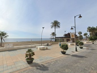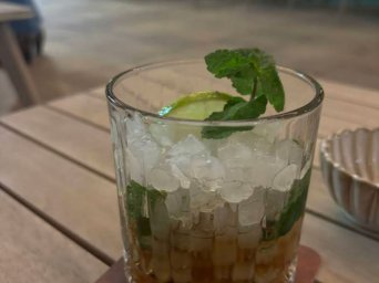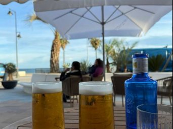 It has two terraces, each with a total capacity of 25 or more tables. One overlooks the beach, and the other terrace overlooks the other side, where there is a pedestrian path where many people always pass by.