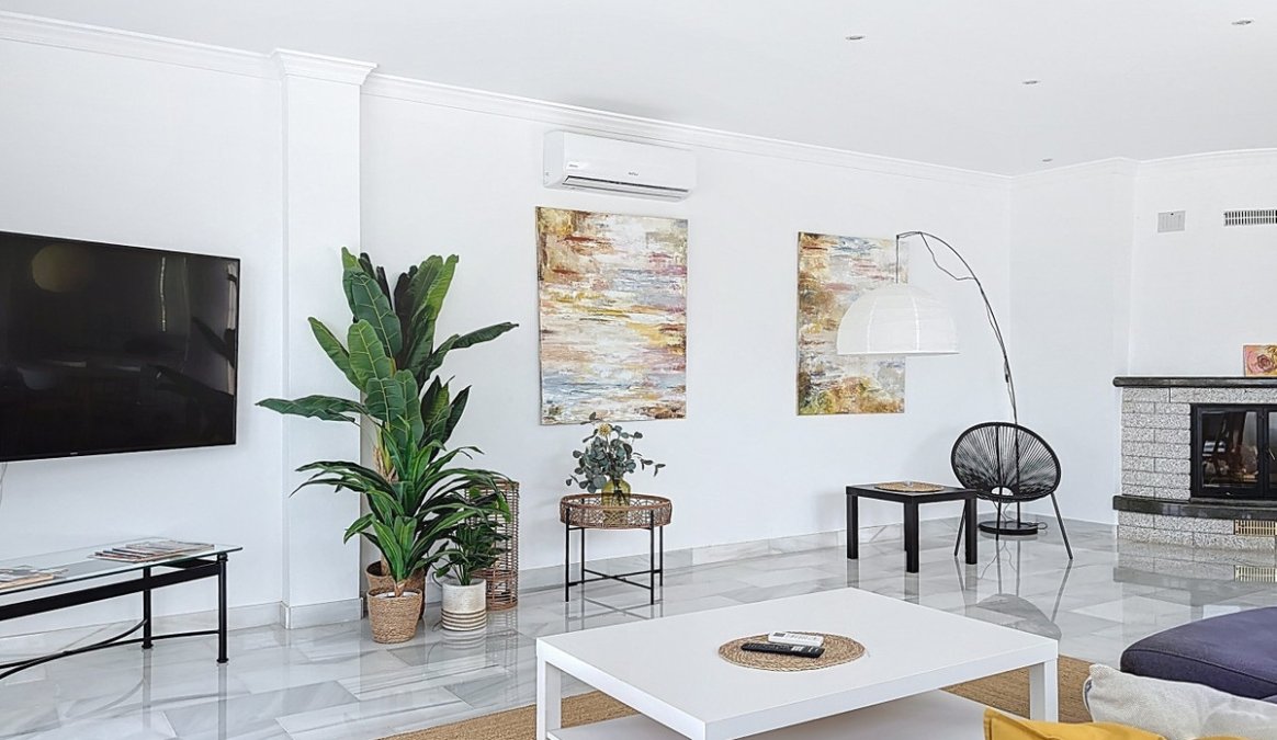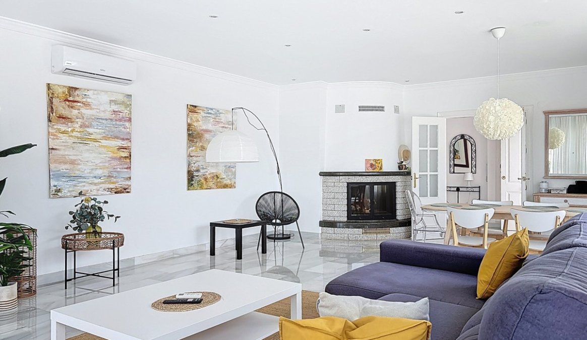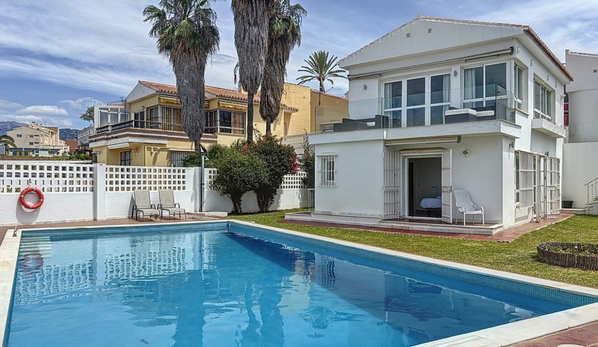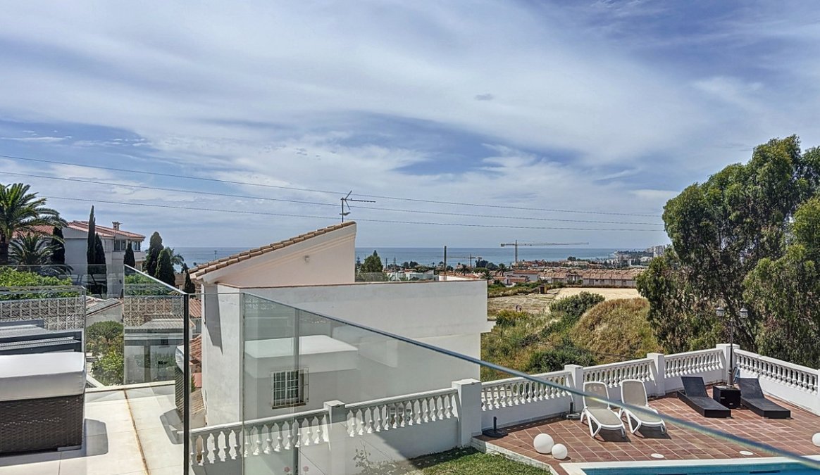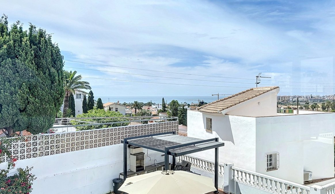 This beautifully presented modern villa in Caleta de VΓ©lez offers spacious living, stunning sea views, and excellent outdoor spaces, just minutes from the beach, marina, and golf course. On the main entrance level (first floor), you'll find a brand-new, fully fitted kitchen with a separate laundry room, a full bathroom, and an open-plan dining and living area that is exceptionally spacious. The living area opens onto a terrace with panoramic views of the sea. Thanks to its south-west orientation, the space enjoys abundant natural light throughout the afternoon and spectacular sunsets. The ground floor features two comfortable guest bedrooms, each with built-in wardrobes and direct access to the garden, along with a full bathroom. The master bedroom is more generous in size, also with built-in wardrobes, an en-suite bathroom, and garden access. The garden boasts a large swimming pool, approximately 12 by 6 metres, and a dedicated outdoor barbecue area, making it perfect for entertaining or relaxing in the sun.