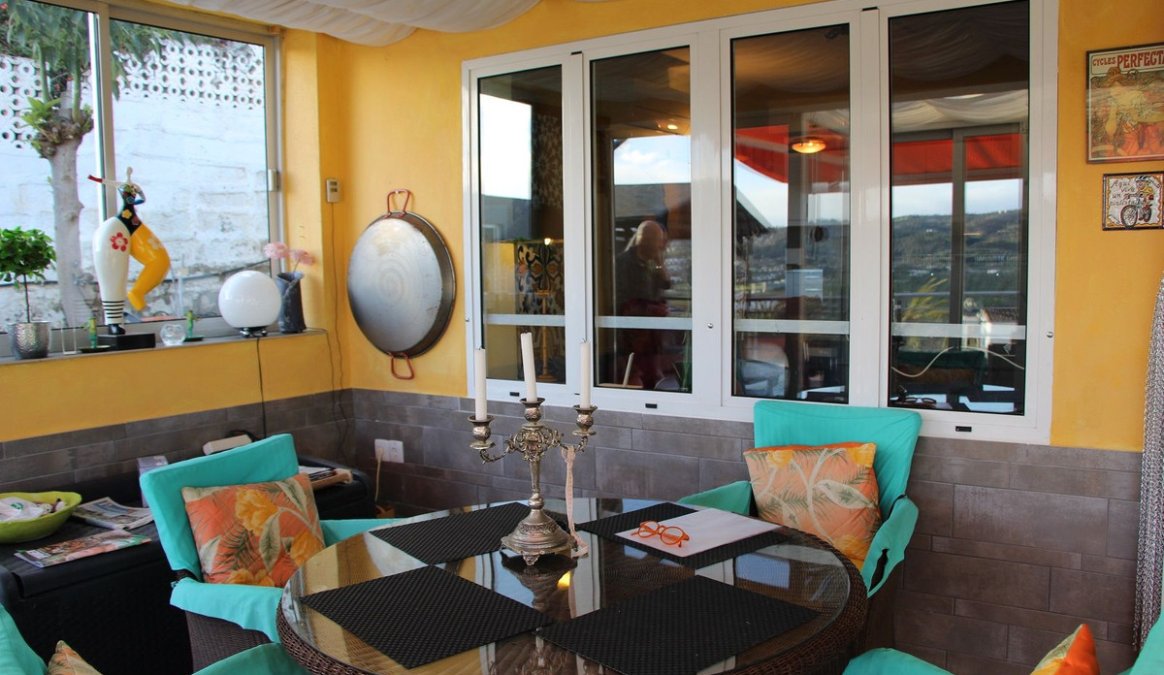 The front of the house has a conservatory, with an electric awning overlooking the swimming pool and panoramic view. Great space for the winter months, maximising the sunshine and light.