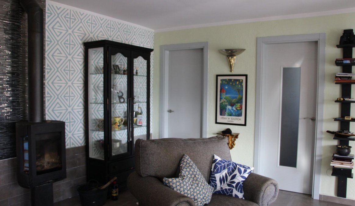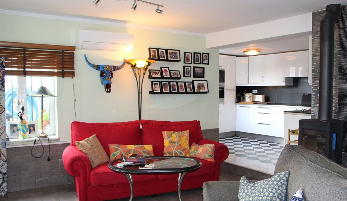 The open-plan living and kitchen area are a good size and in excellent condition. A large, modern, fully-fitted kitchen with a built-in oven, hob and dishwasher. The lounge is tastefully decorated with a wood-burner and hot and cold air-conditioning. The current owner has also installed underfloor heating throughout the entire property.