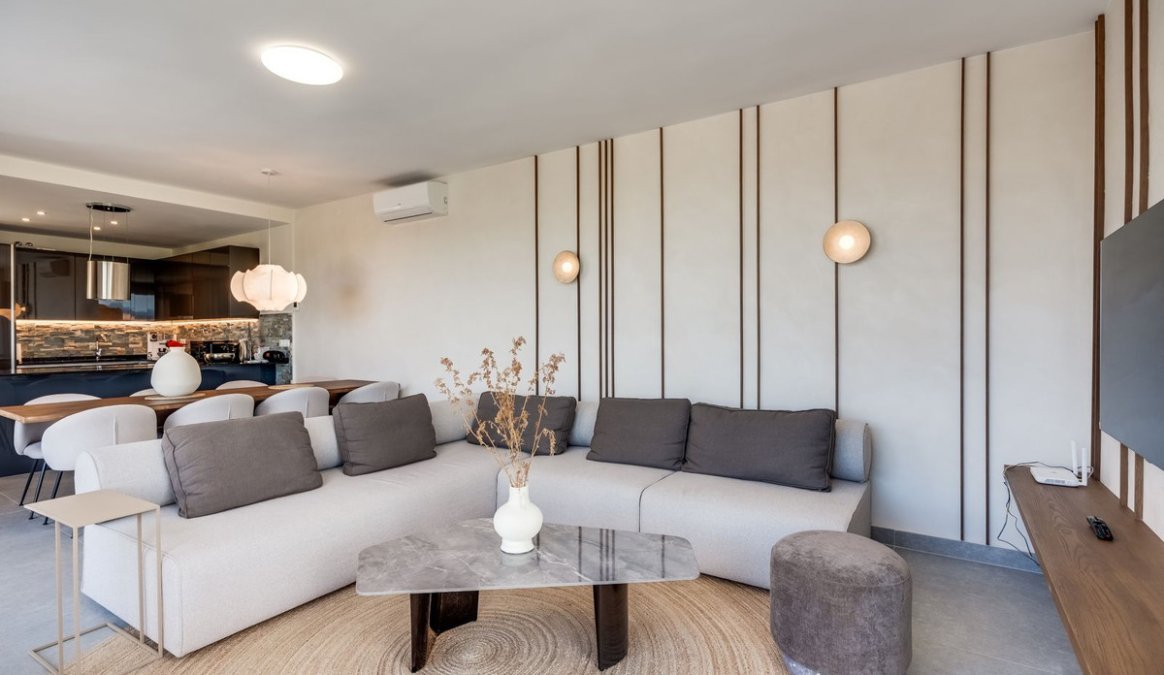 This modern villa has been stylishly designed and finished with high-quality materials. As soon as you enter, the spacious layout immediately stands out, combined with plenty of natural light thanks to the large windows. The open living area connects perfectly with the terraces and garden, creating a seamless flow between indoor and outdoor living.