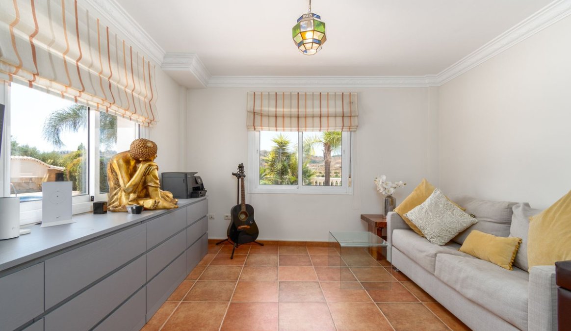 Just 4 minutes by car (2.5 km) from the vibrant centre of La Cala de Mijas, this elegant villa offers 378 mΒ² of built area on a generous 2,559 mΒ² plot, divided into two parts.