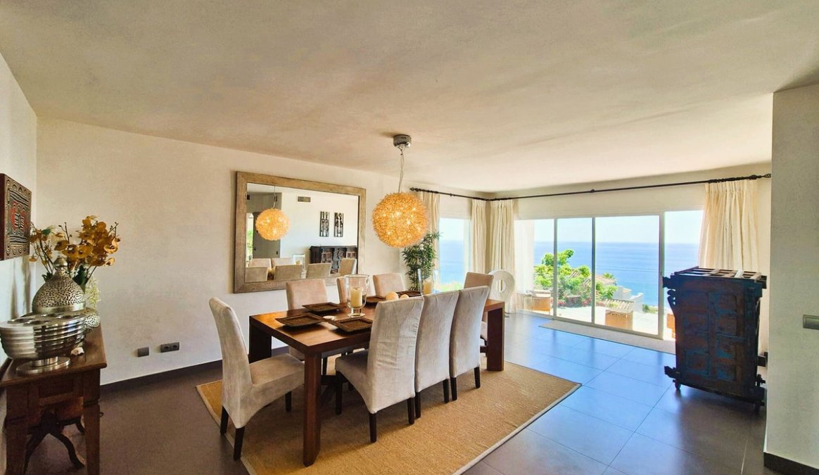 As you step inside, you're welcomed by a spacious entrance hall where the beautiful Mediterranean views immediately capture your attention. Youβll find a fully equipped kitchen with a separate laundry room, a spacious living room with fireplace, and a dining room that connects directly to a covered terrace ideal for indoor-outdoor living. There's also a guest toilet and another covered terrace accessible from several rooms.