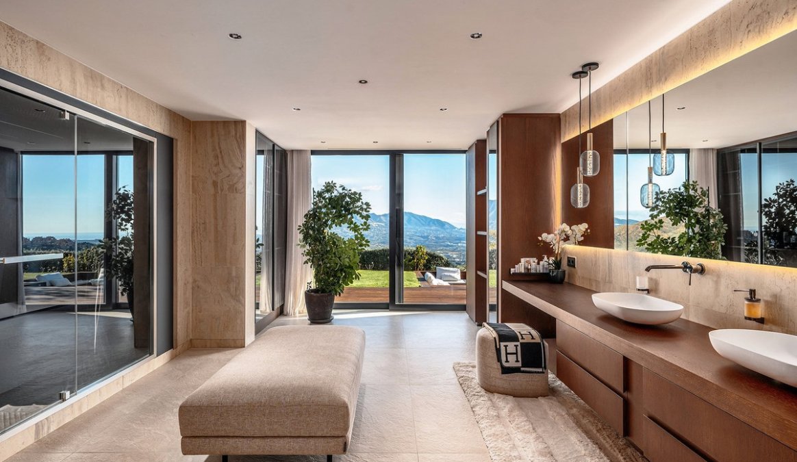 The master suite stands out as a private retreat, complete with a walk-in wardrobe and a spa-inspired bathroom including sauna, steam room and hydrotherapy bathtub. This villa offers a rare blend of design, lifestyle and practicality in one of Marbella Eastβs most sought-after locations.