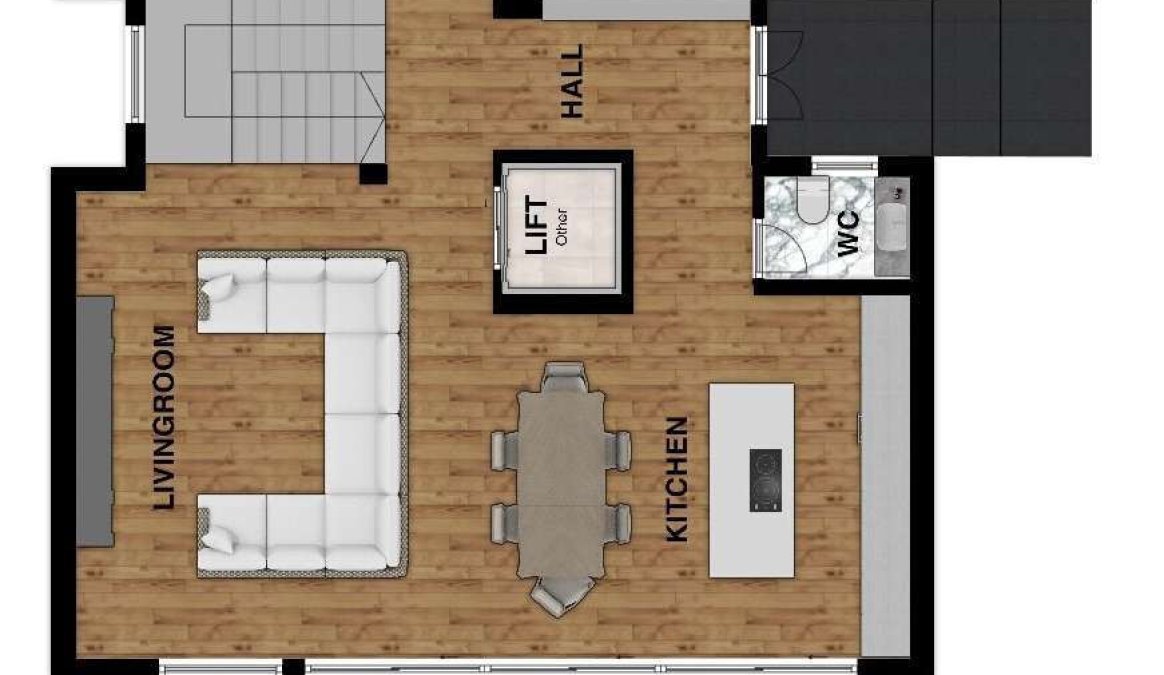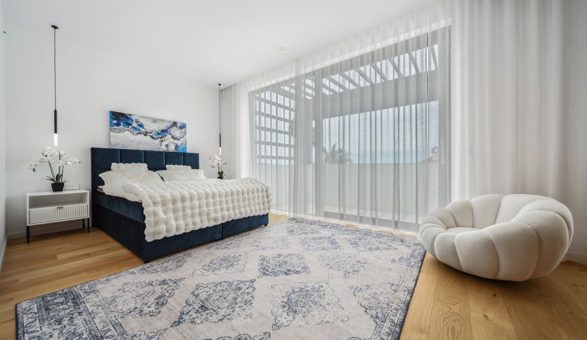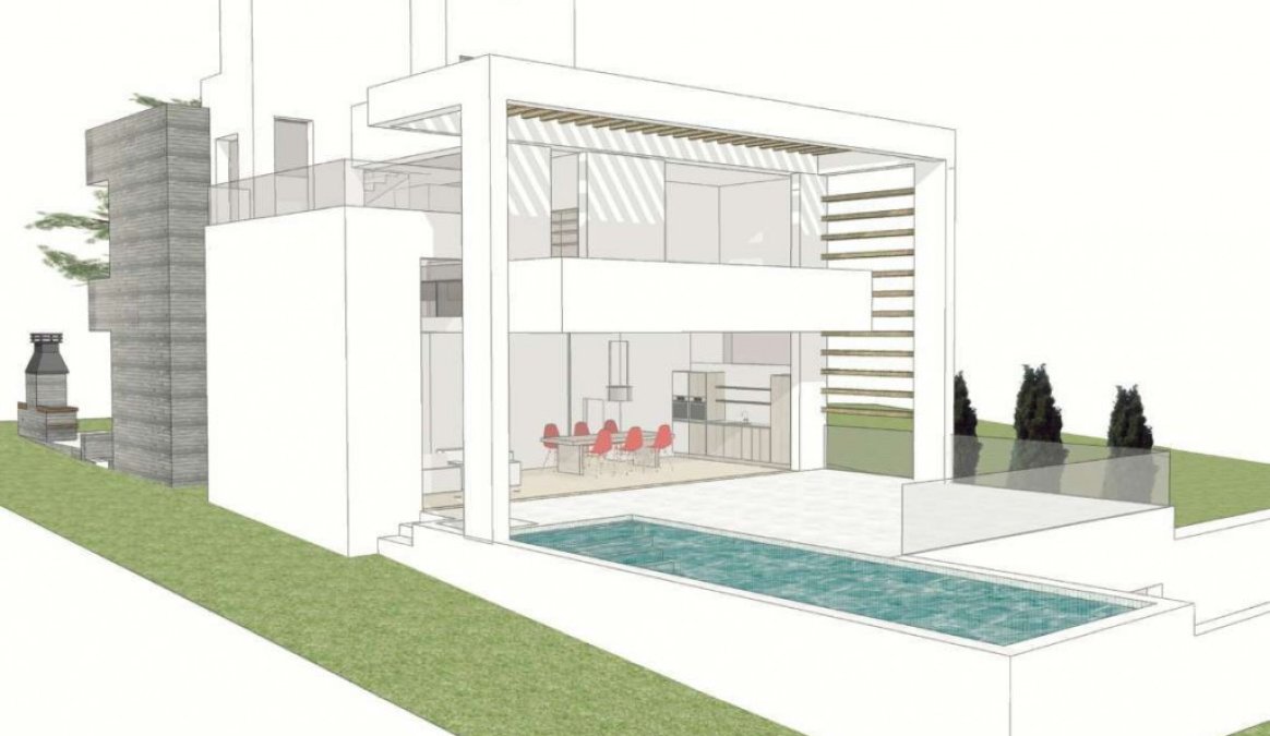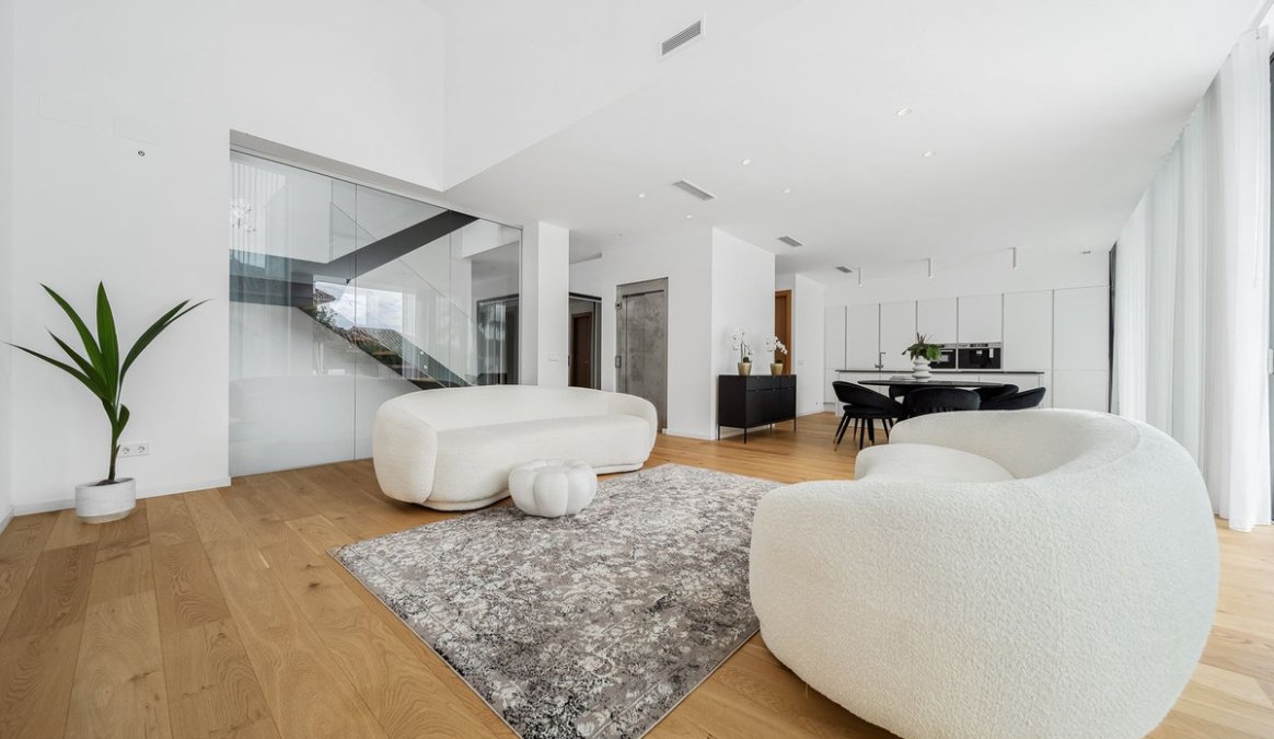 The roof terrace will be equipped with a jacuzzi, shower and an outdoor kitchen. Natural oak parquet is used on the floors of the house.