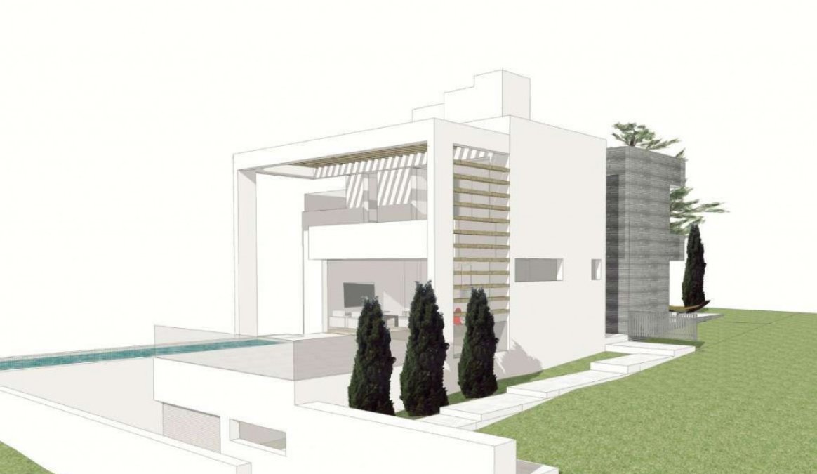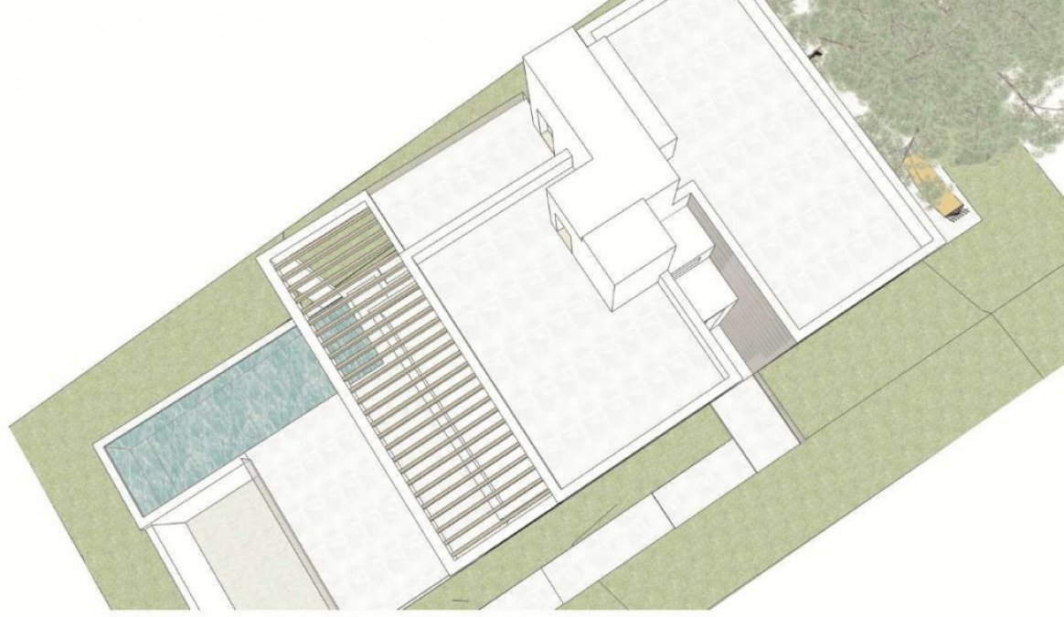 The property is bordered by a protected pine forest from the north. The house's roof terrace offers 180 degree free view of the sea and the surrounding mountains.