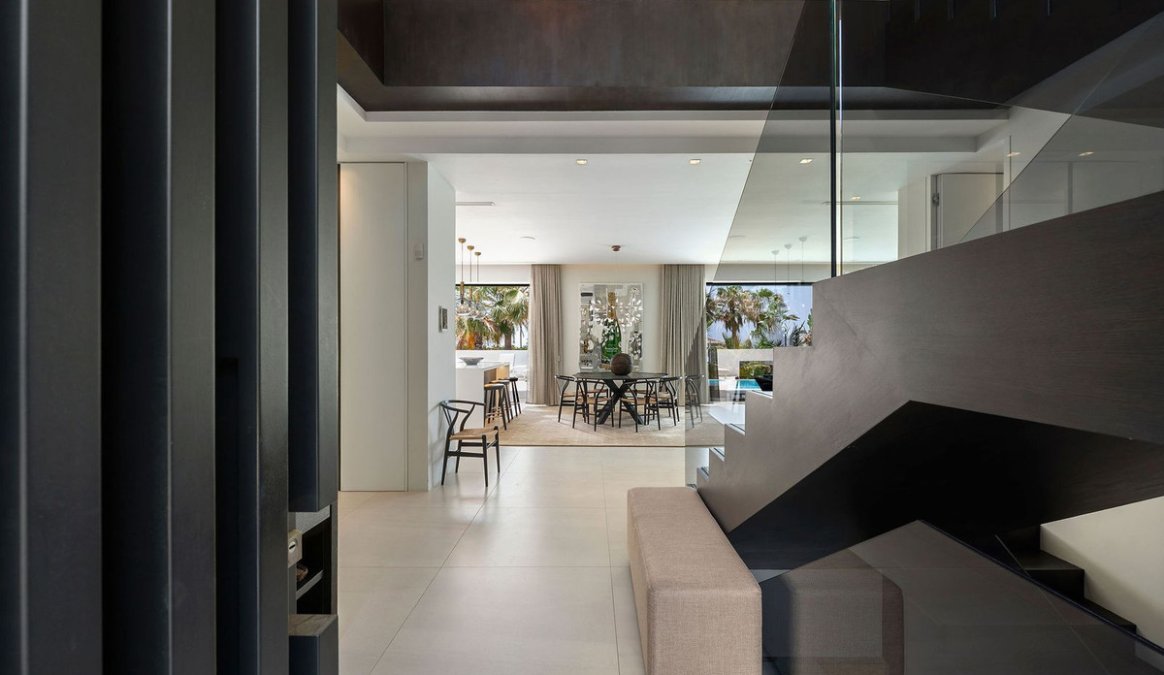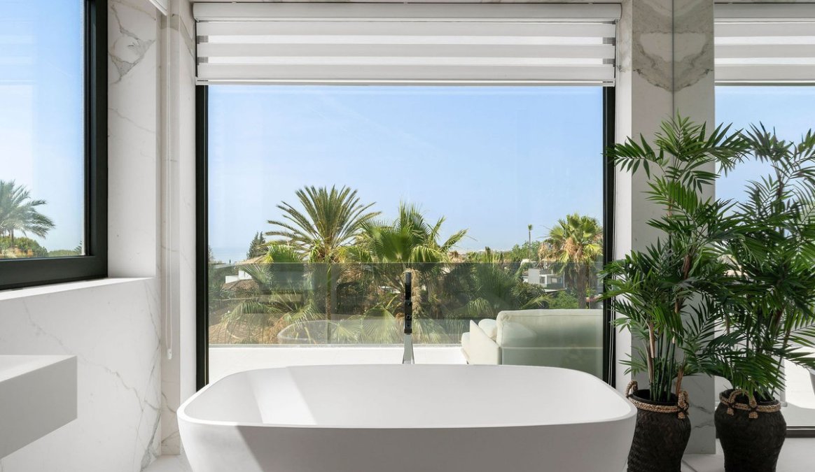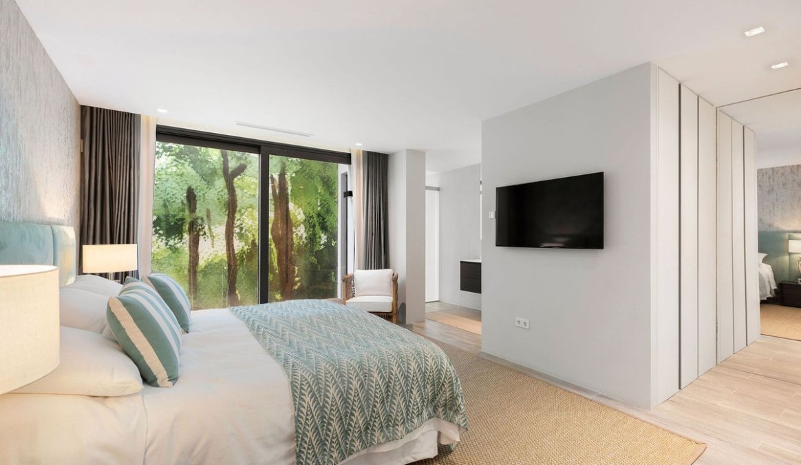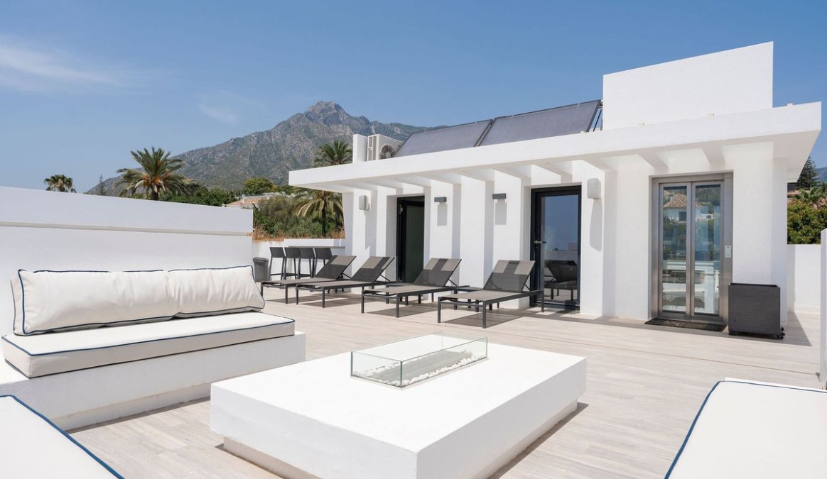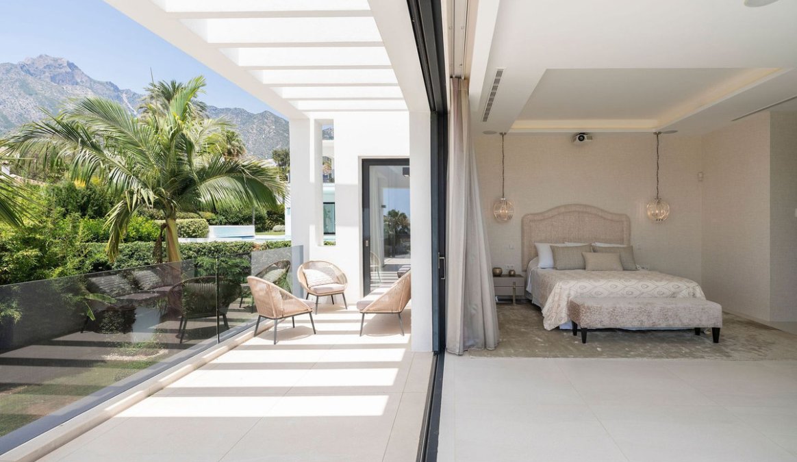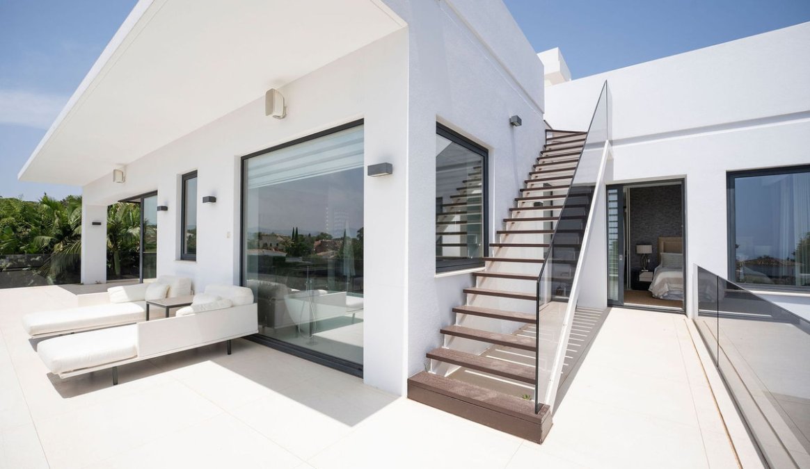 A stunning modern luxury Villa in Nagueles, Marbella Golden Mile offering easy access to Marbella centre and just 10 minutesβ drive from Puerto Banus. The property is built to the highest specifications with great attention to detail and using top quality materials and installations throughout. The villa is distributed over three levels all connected with an elevator including basement area, plus a spacious solarium roof terrace. The basement level includes private garage with turntable mechanism, entertainment area with TV lounge, a full-size bar, lounge; good sized staff/guest bedroom with en-suite bathroom, laundry room, guest WC and technical room.