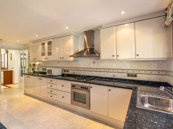 The villa currently comprises five bedrooms and four bathrooms, generously distributed across a spacious layout with excellent natural light thanks to its ideal orientation. The property provides a solid structure and a blank canvas for transformation, whether into a luxurious private residence or a high-yield rental investment.