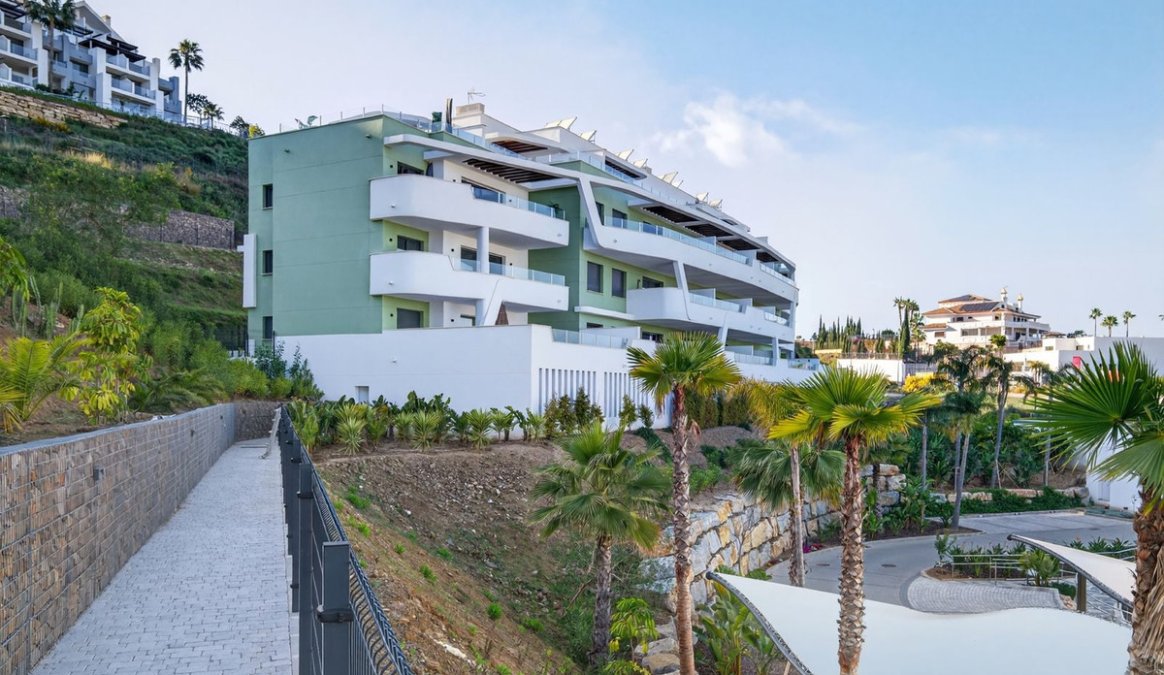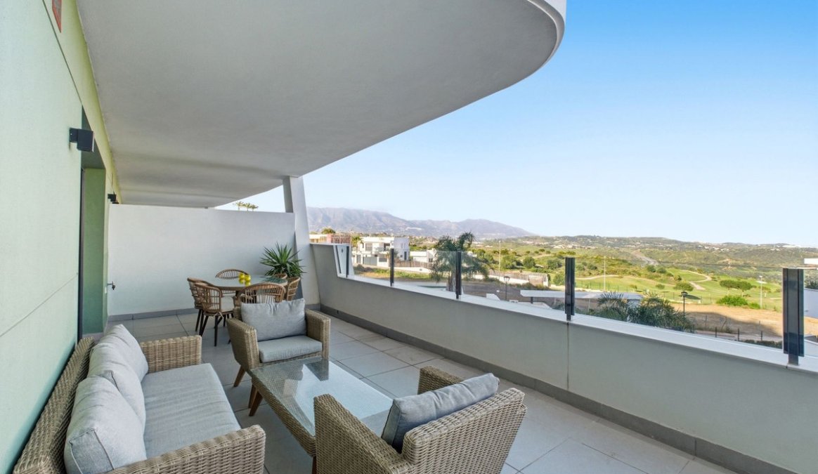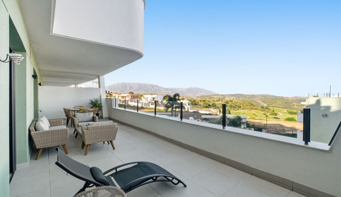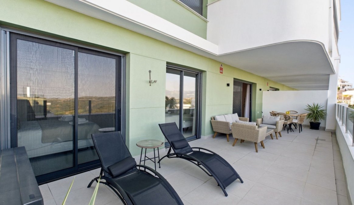 Beautifully presented 2-bedroom, 2-bathroom ground floor apartment located in a prestigious gated community in La Cala Golf, with stunning panoramic views over Calanova Golf, the mountains, and surrounding greenery.