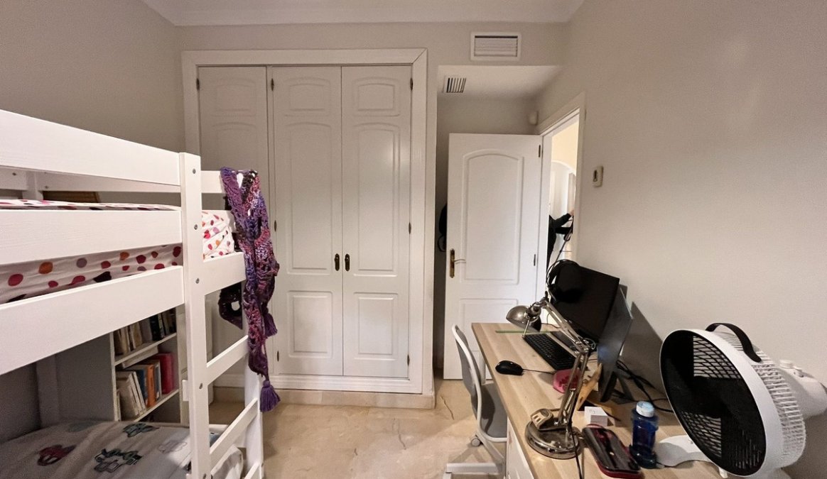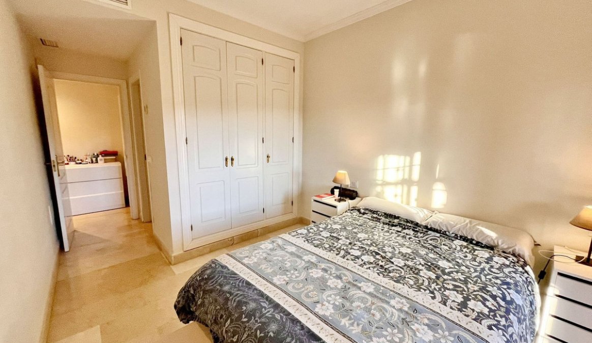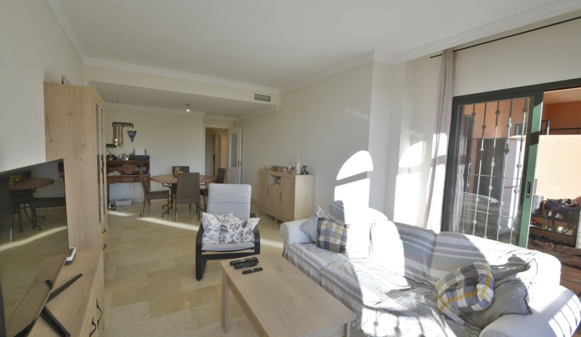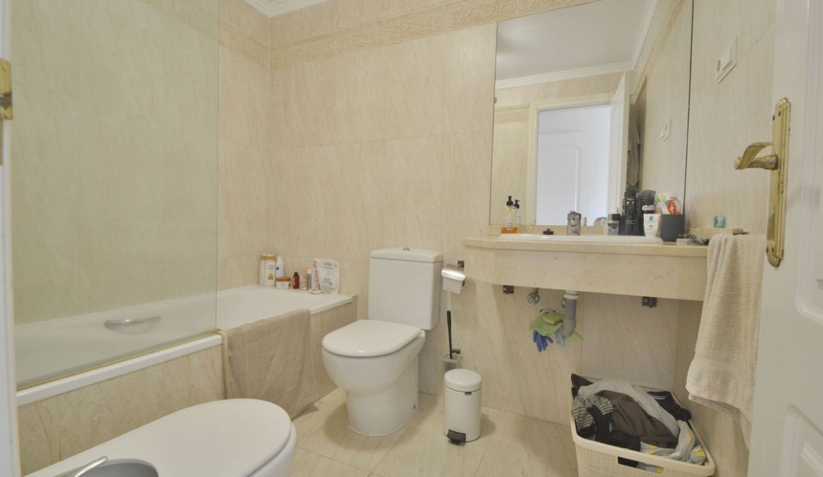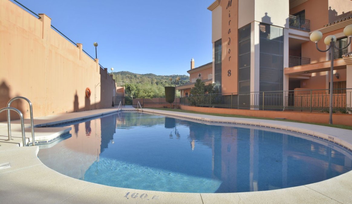 Fantastic apartment in Elviria-Marbella located on the golf course front line with open views and no buildings in front of you to block the view. The property is located in the gated complex El Mirador de Santa MarΓa Golf, surrounded by well-kept gardens and several swimming pools. The property has two bedrooms with built-in wardrobes, two full bathrooms, one of which is en-suite, a large, bright living-dining room with large windows, a separate fitted and equipped kitchen and a covered, sunny terrace. Parking space and storage room included. Very close to all amenities, such as supermarkets, banks, restaurants, pharmacies and the best beaches in Marbella.