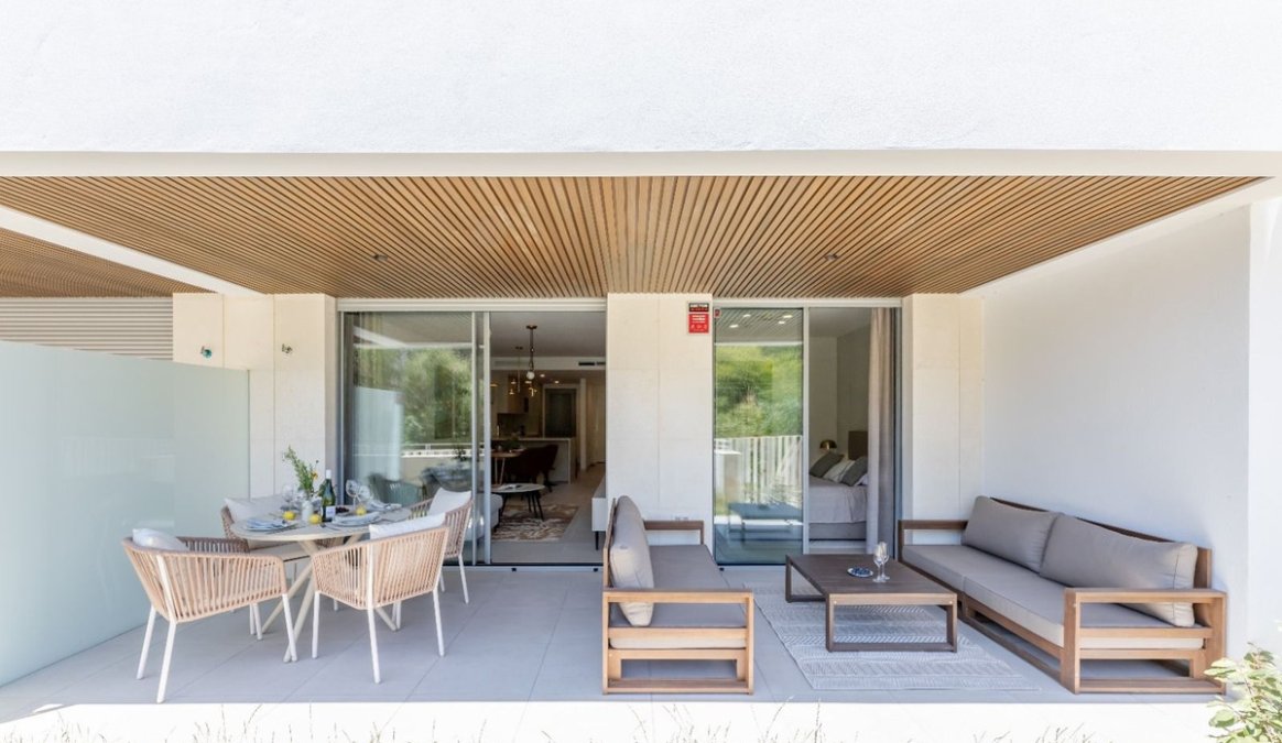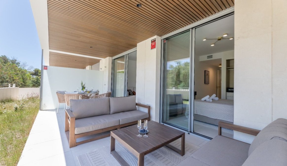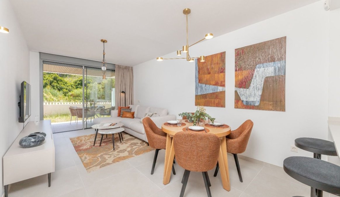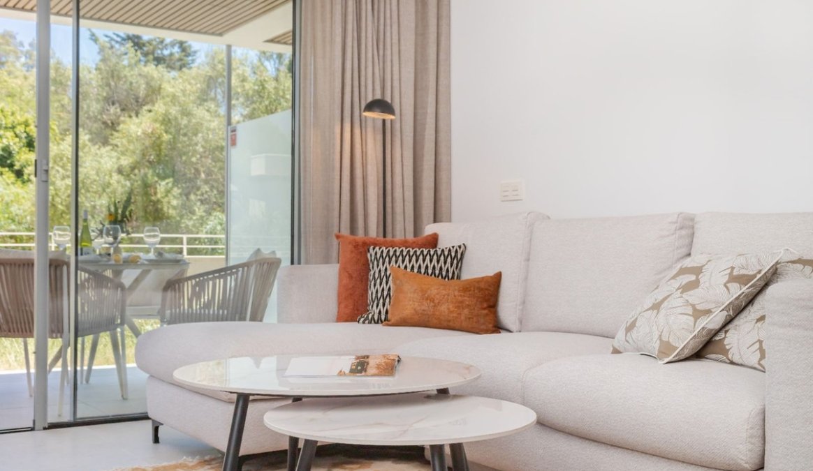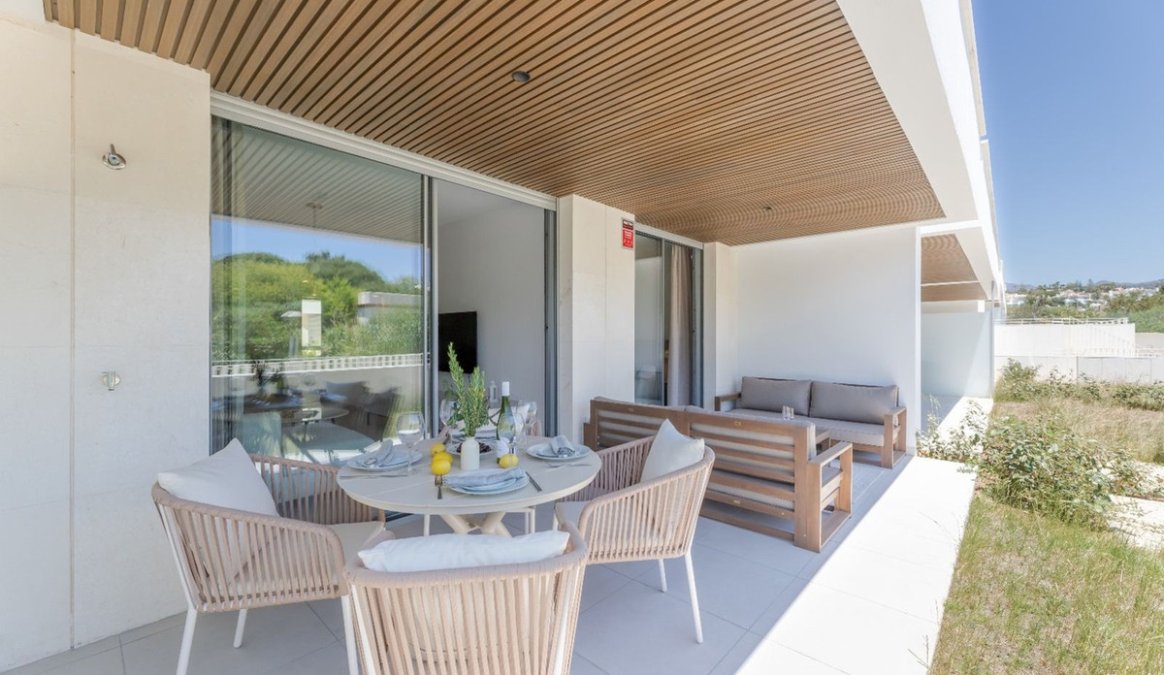 Set within the prestigious Estrella del Mar development, located in the peaceful and green surroundings of Elviria, this elegant ground-floor apartment has been thoughtfully designed to offer comfort, privacy, and a harmonious connection with its natural setting.