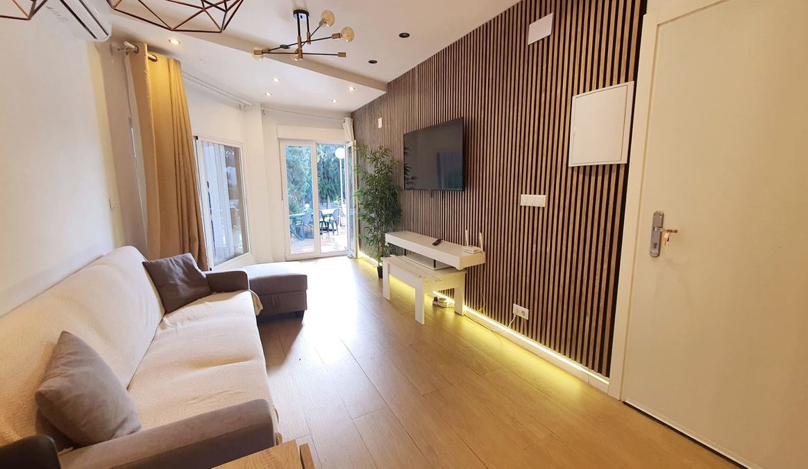 Cozy ground floor corner apartment for sale in DoΓ±a Pilar, completely renovated! This property offers a modern open plan design with fully equipped kitchen, lounge dining with access to the terrace, 2 bedroom, and one bathroom with large italian walk in shower. The apartment offr new plumbing, new electric, new floor, new doors, spots lights, A/C, double glazed windows, all very well presented. The terrace is facing the lovely pool area with plenty of place to eat, sunbathe, and with grass all around. It is walking distance to transport and five minutes driving to the Fuengirola beaches.