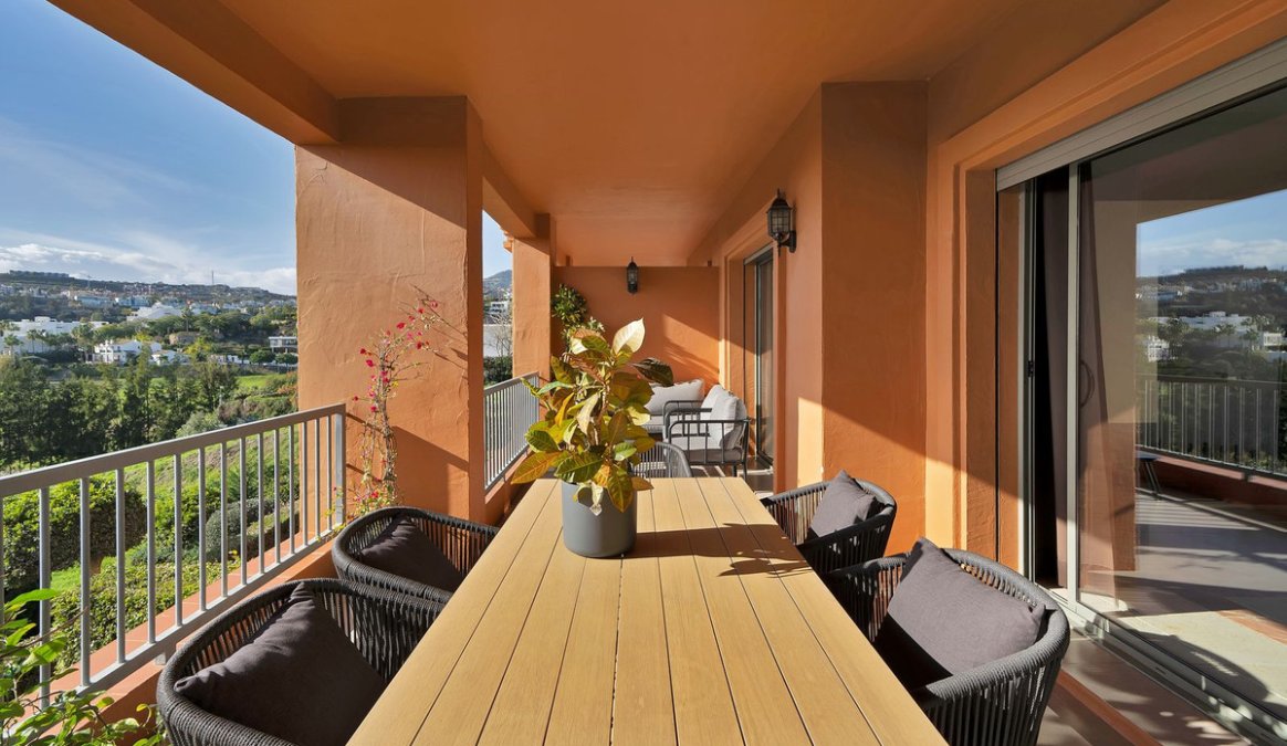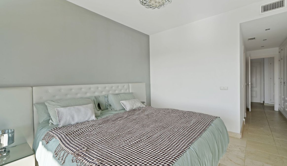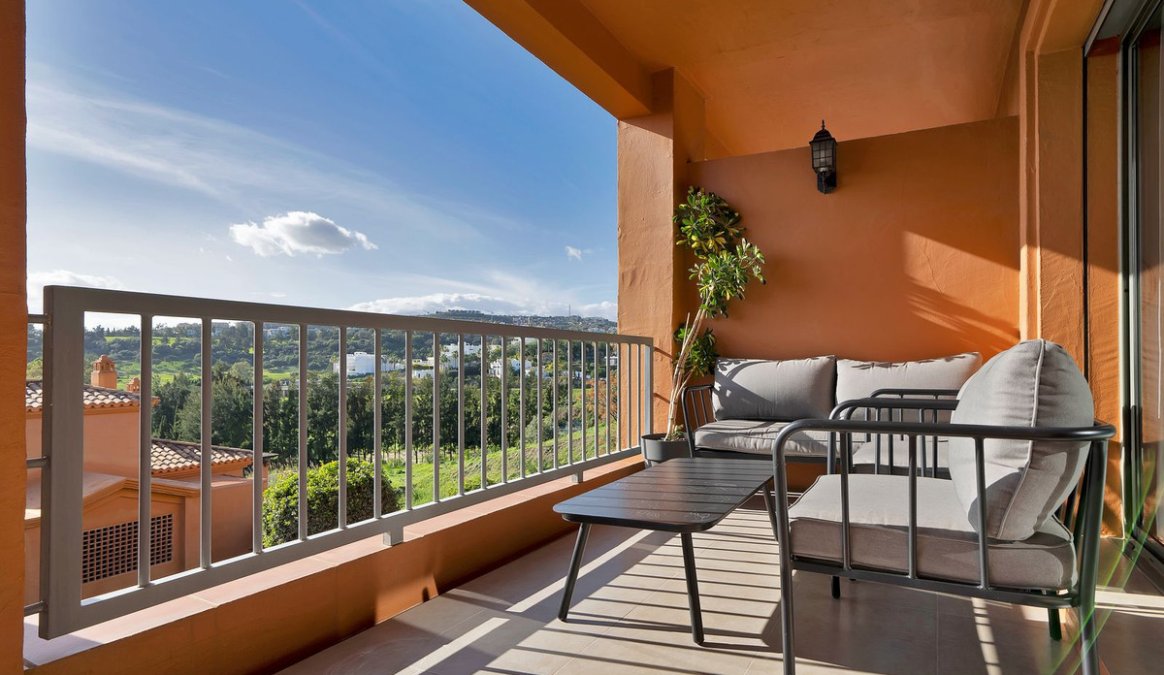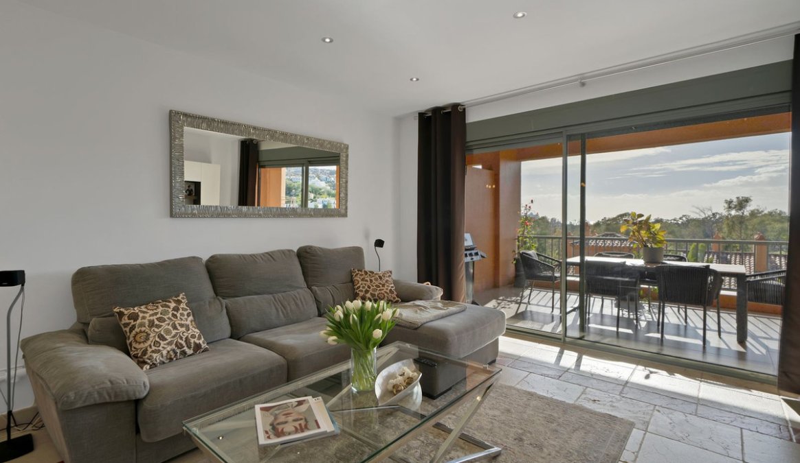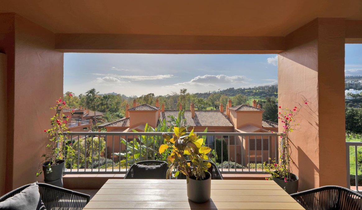 This 2-bedroom, 2-bathroom apartment is being offered for sale for the very first time since it was built. It is ideally positioned in one of the best blocks of the complex, ensuring total privacy and truly breathtaking panoramic views. From the terrace, you can enjoy sweeping vistas of the Mediterranean Sea, Africa, Gibraltar, Atalaya Golf, and the surrounding hills. With its west-facing orientation, the apartment benefits from abundant natural light throughout the afternoon and unforgettable sunsets.