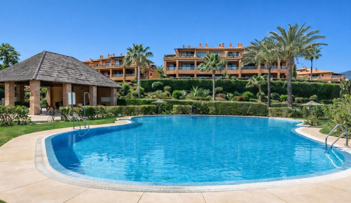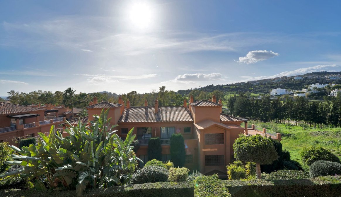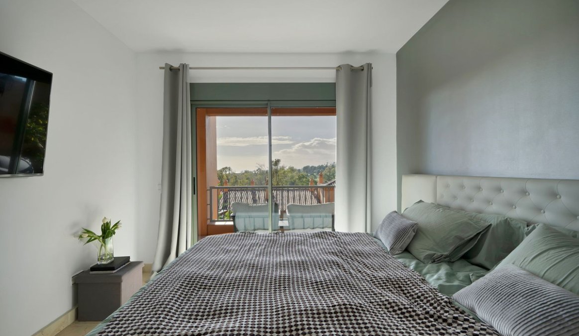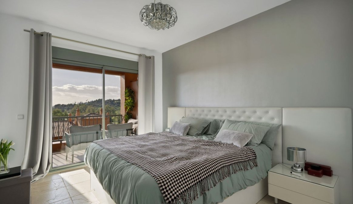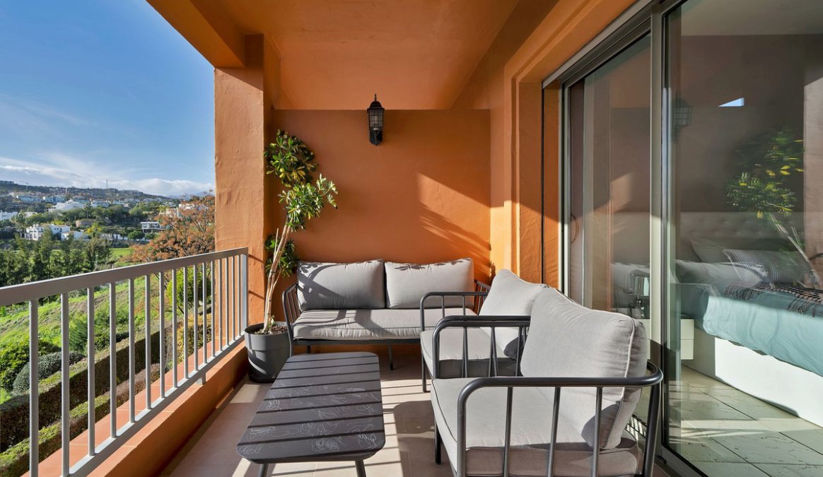This 2-bedroom, 2-bathroom apartment is being offered for sale for the very first time since it was built. It is ideally positioned in one of the best blocks of the complex, ensuring total privacy and truly breathtaking panoramic views. From the terrace, you can enjoy sweeping vistas of the Mediterranean Sea, Africa, Gibraltar, Atalaya Golf, and the surrounding hills. With its west-facing orientation, the apartment benefits from abundant natural light throughout the afternoon and unforgettable sunsets.