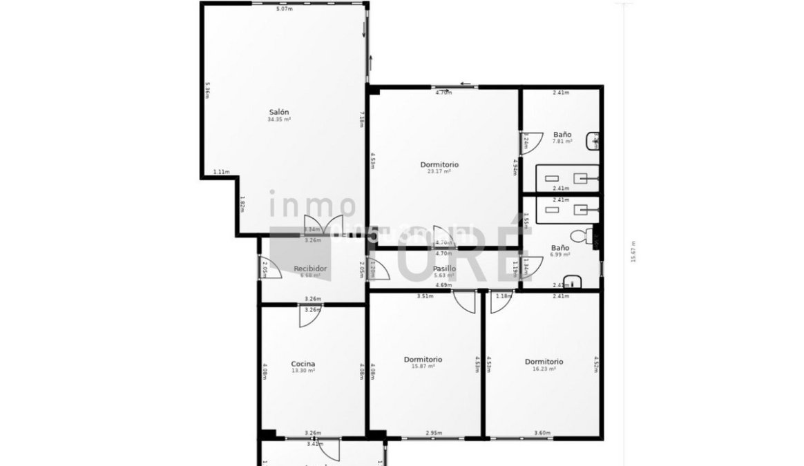 Three spacious bedrooms, the main bedroom with en-suite bathroom and direct access to the terrace