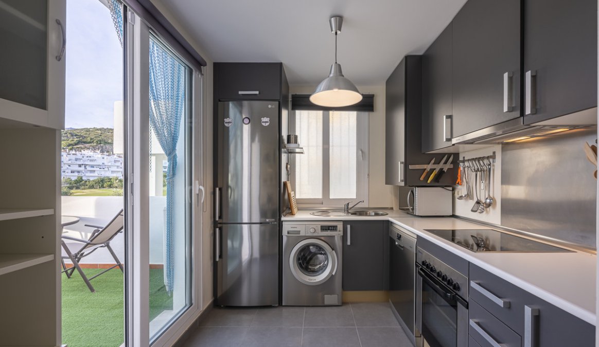 This bright and stylish two-bedroom apartment features a spacious master bedroom with an ensuite bathroom, a modern fully equipped kitchen, and a comfortable open-plan living area that leads onto a southwest-facing terrace with fantastic views over the Valle Romano Golf Course.